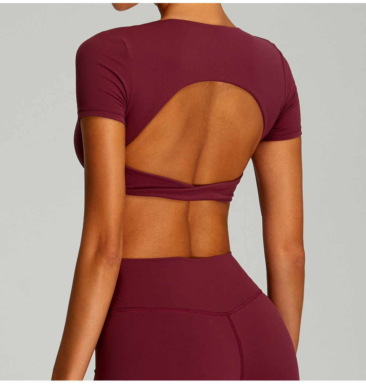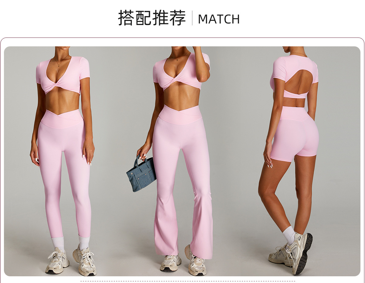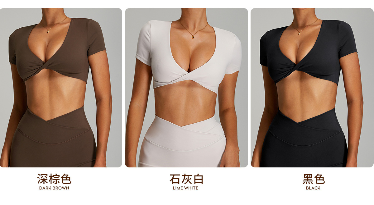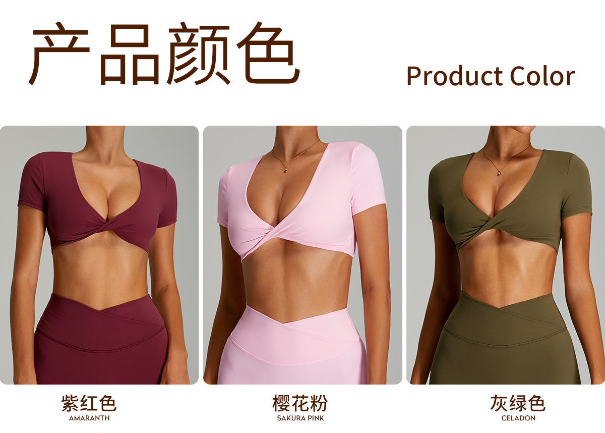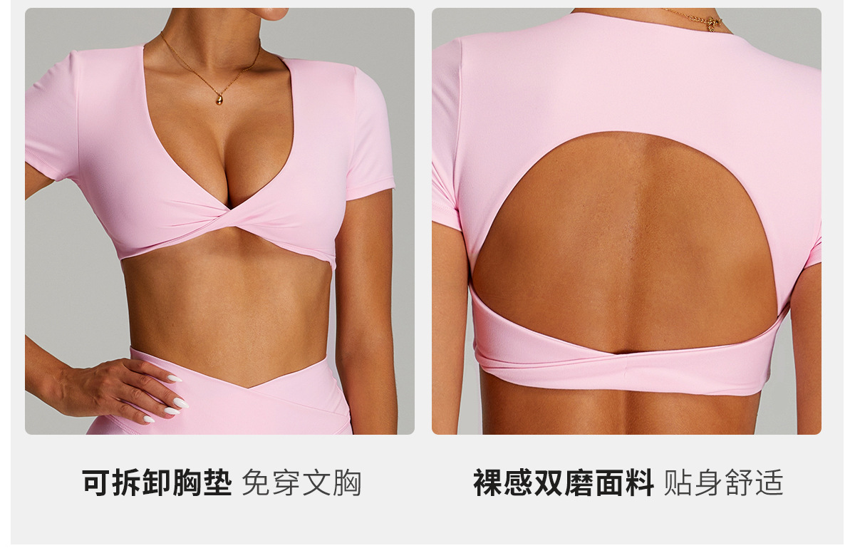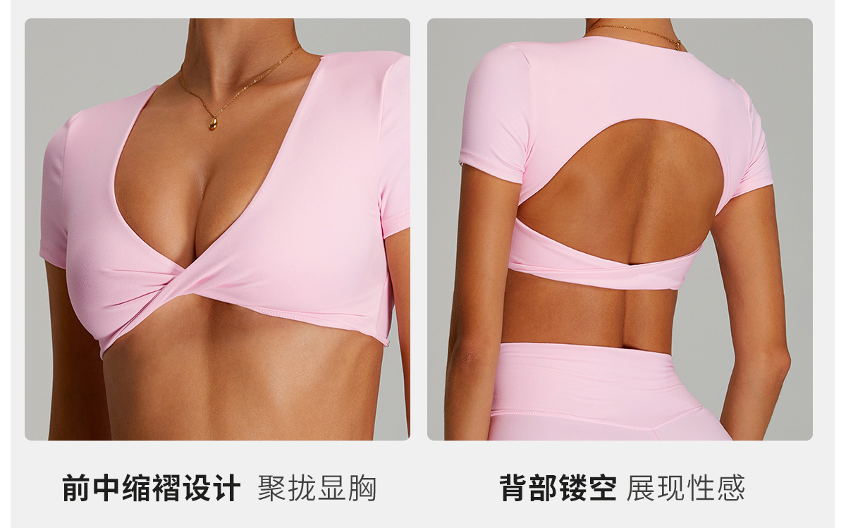 유럽과 미국의 속건성 등이없는 요가복, 여성스러운 요가 반팔 스포츠 티셔츠 탑, 야외 러닝 피트니스 탑스토어 가기