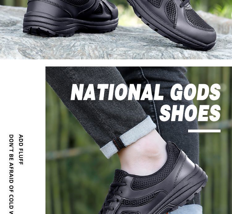 정통 봄 여름 남성 트레이닝화, 초경량 운동화, 크로스컨트리 운동화, 통기성 메쉬 슈즈, 방화 고무 슈즈, 블랙 바디, 얼룩 방지스토어 가기