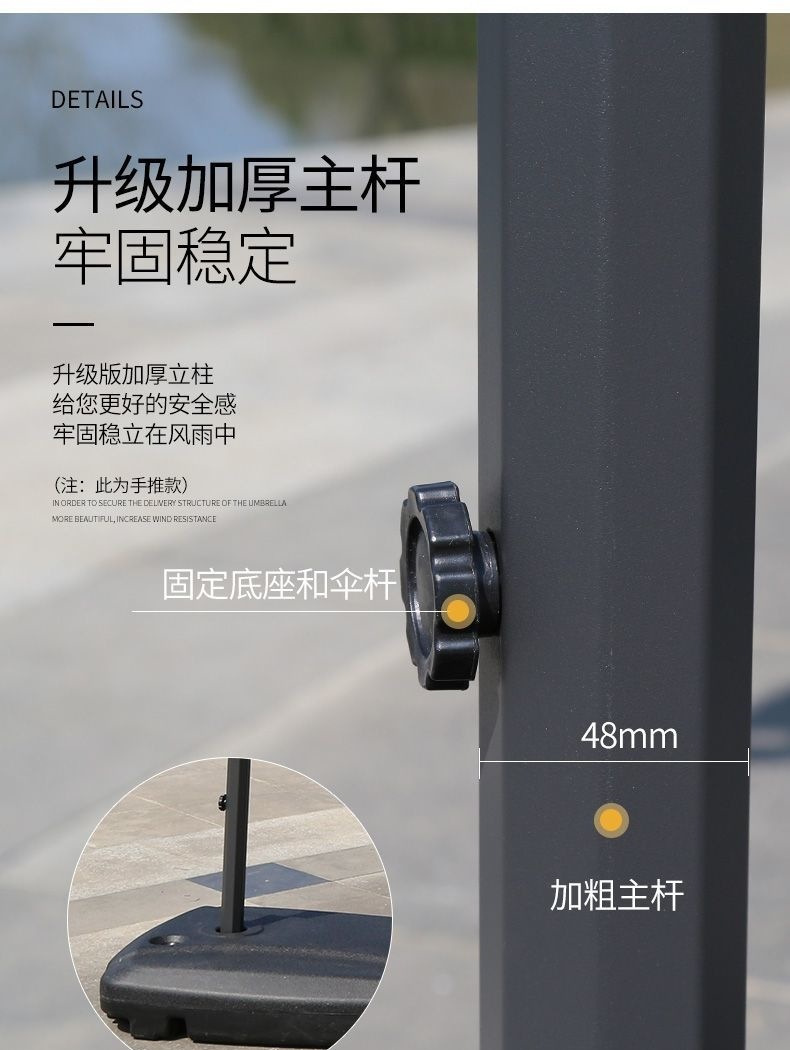 • 이중 상단 갈색 중앙 기둥 우산에는 물 탱크 22kg개가 포함되어 있습니다.