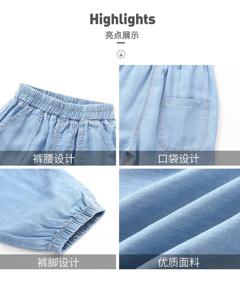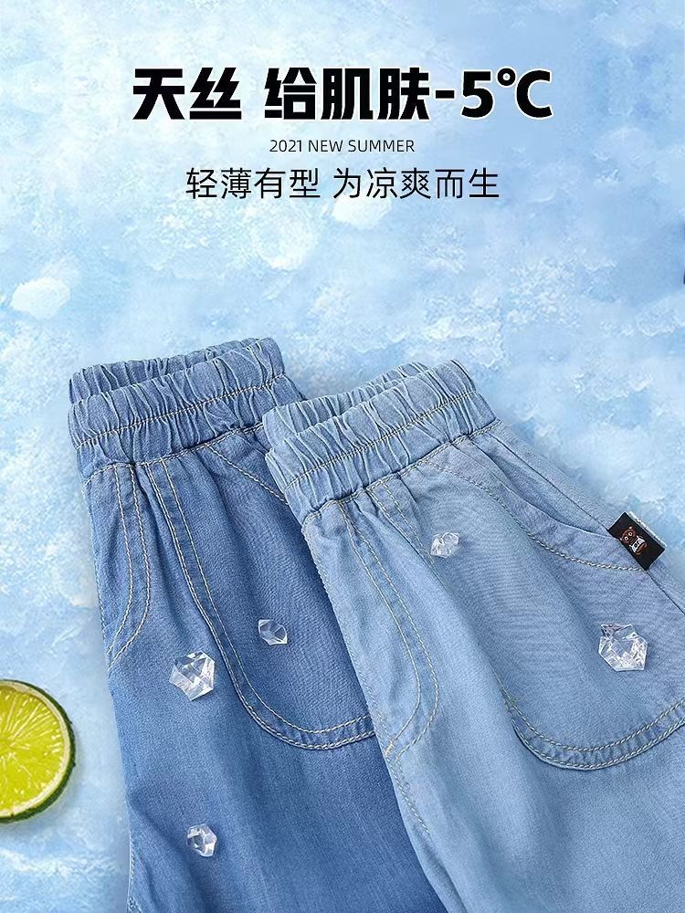 2025 아동용 텐셀 청바지, 남아용 바지, 유아용 엉덩이 바지, 여름 바지, 여아용 대형 PP 바지스토어 가기