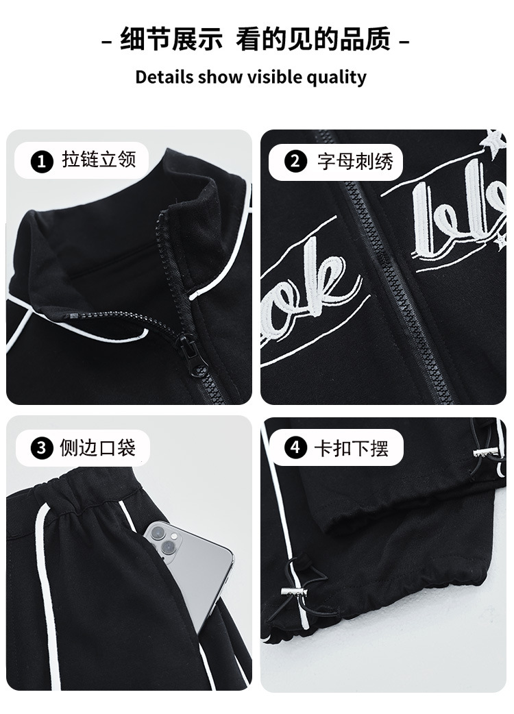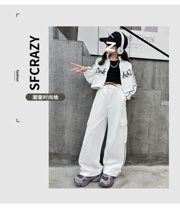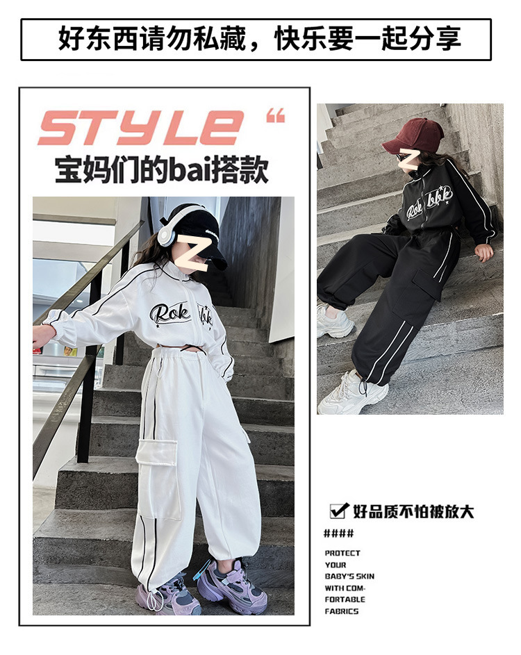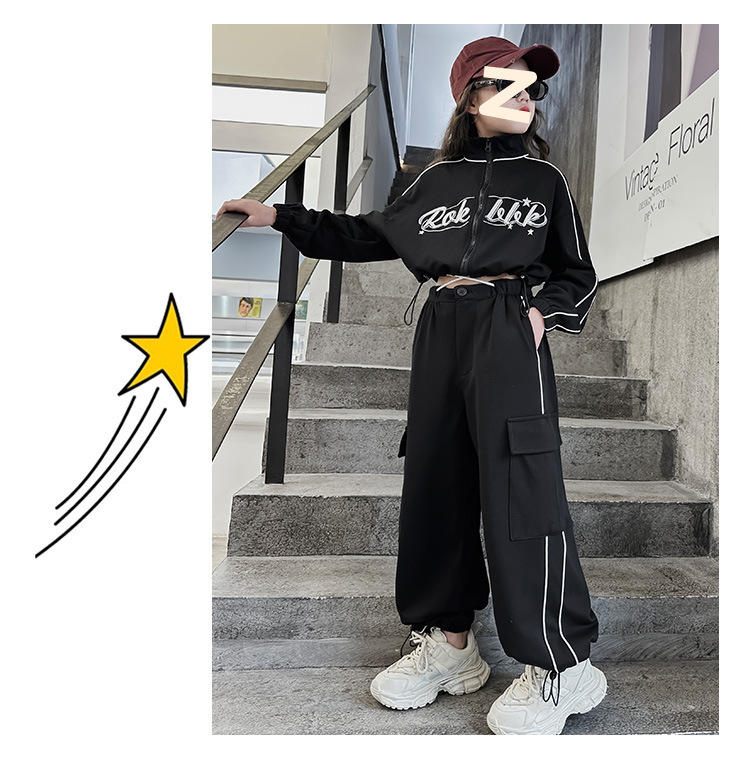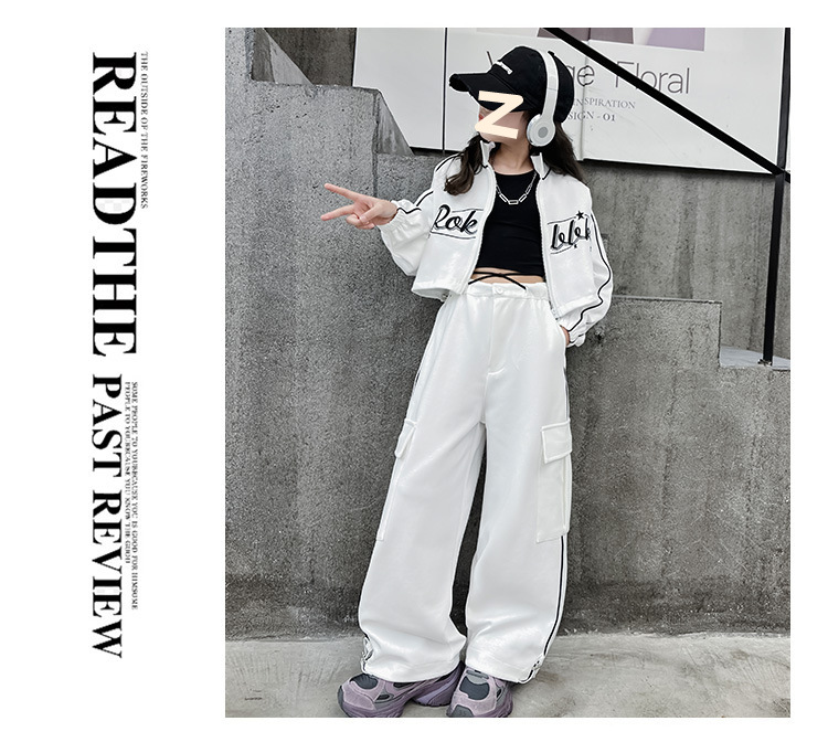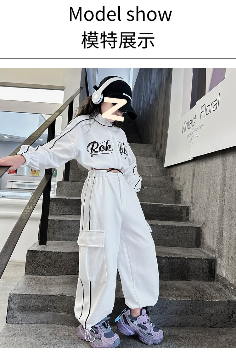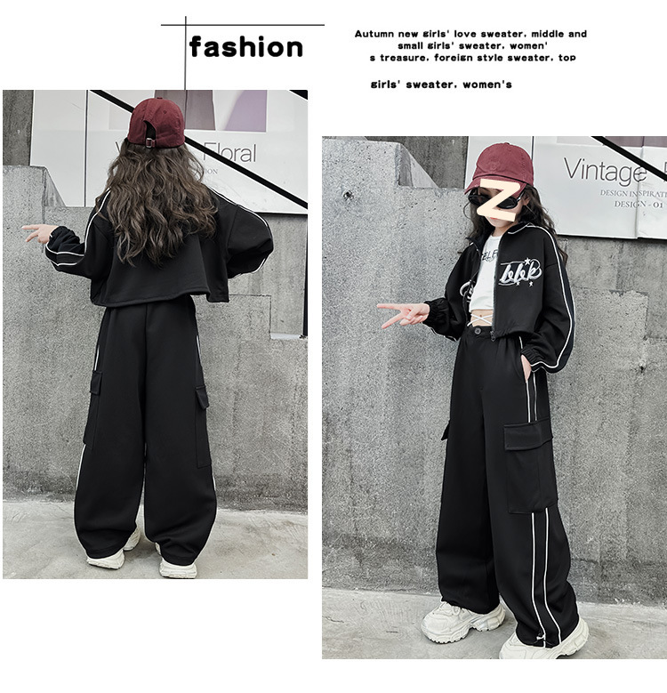 여아 가을 긴팔 자수 재킷과 바지 투피스 세트 2024 새로운 중대형 아동 스플리싱 한국 스포츠 슈트스토어 가기