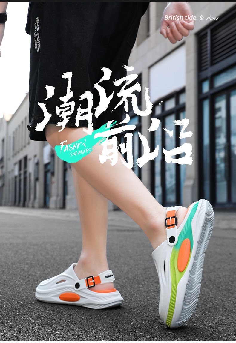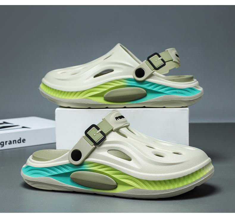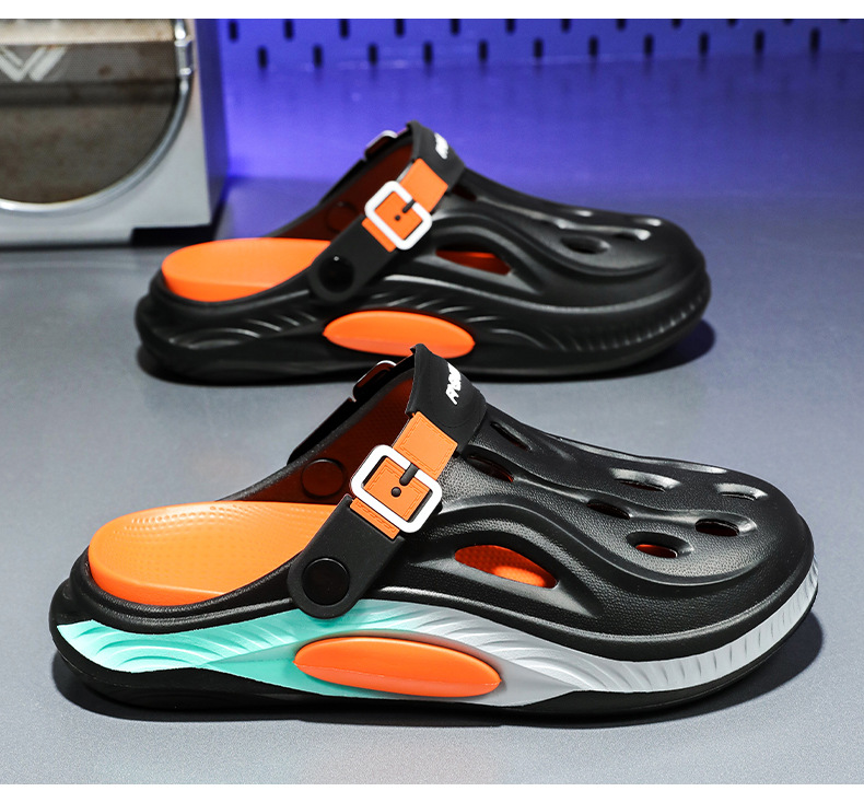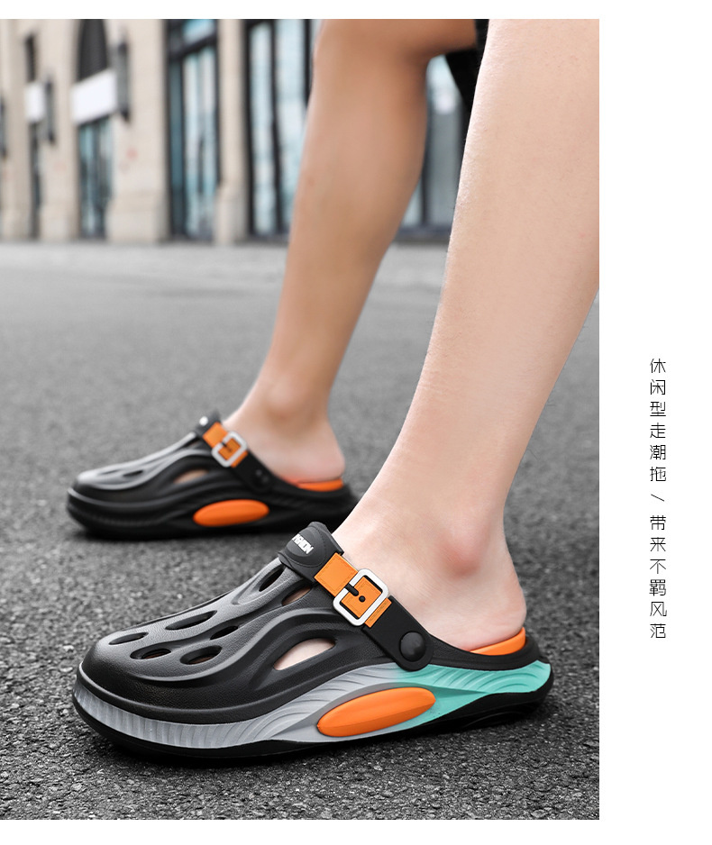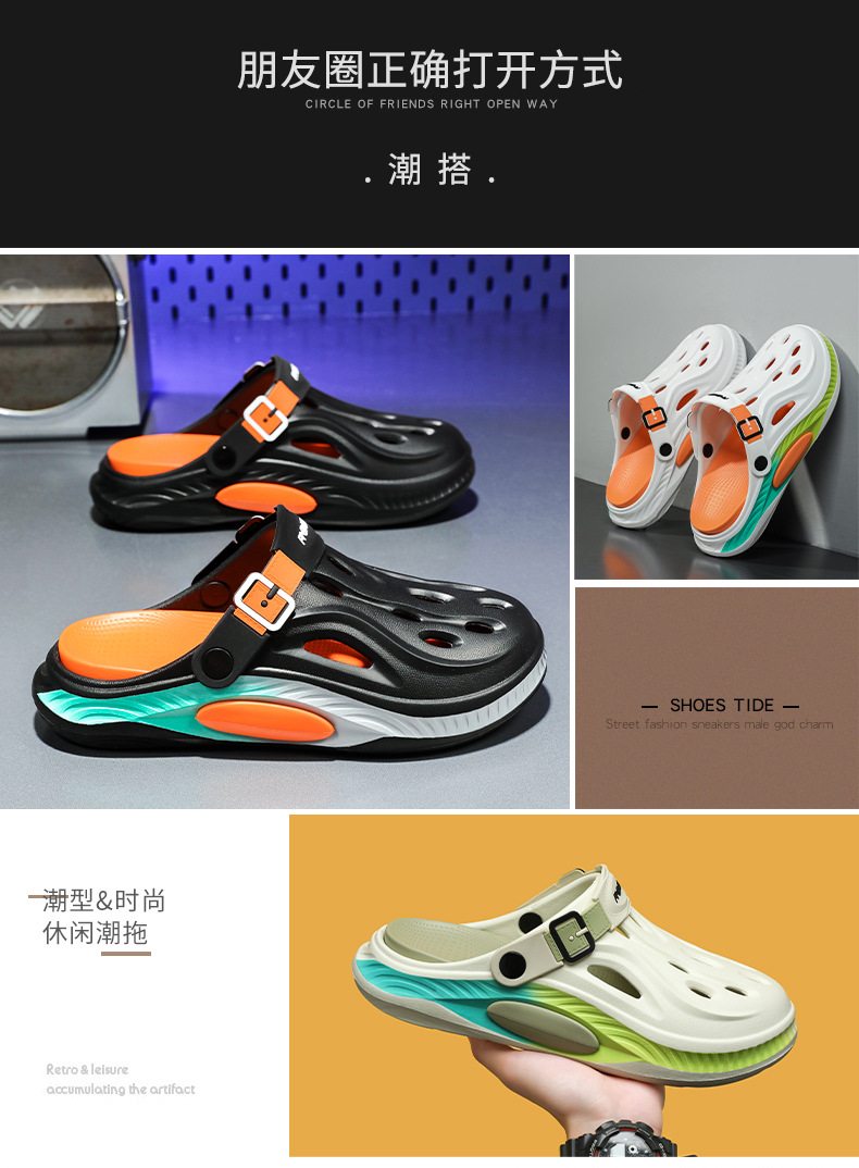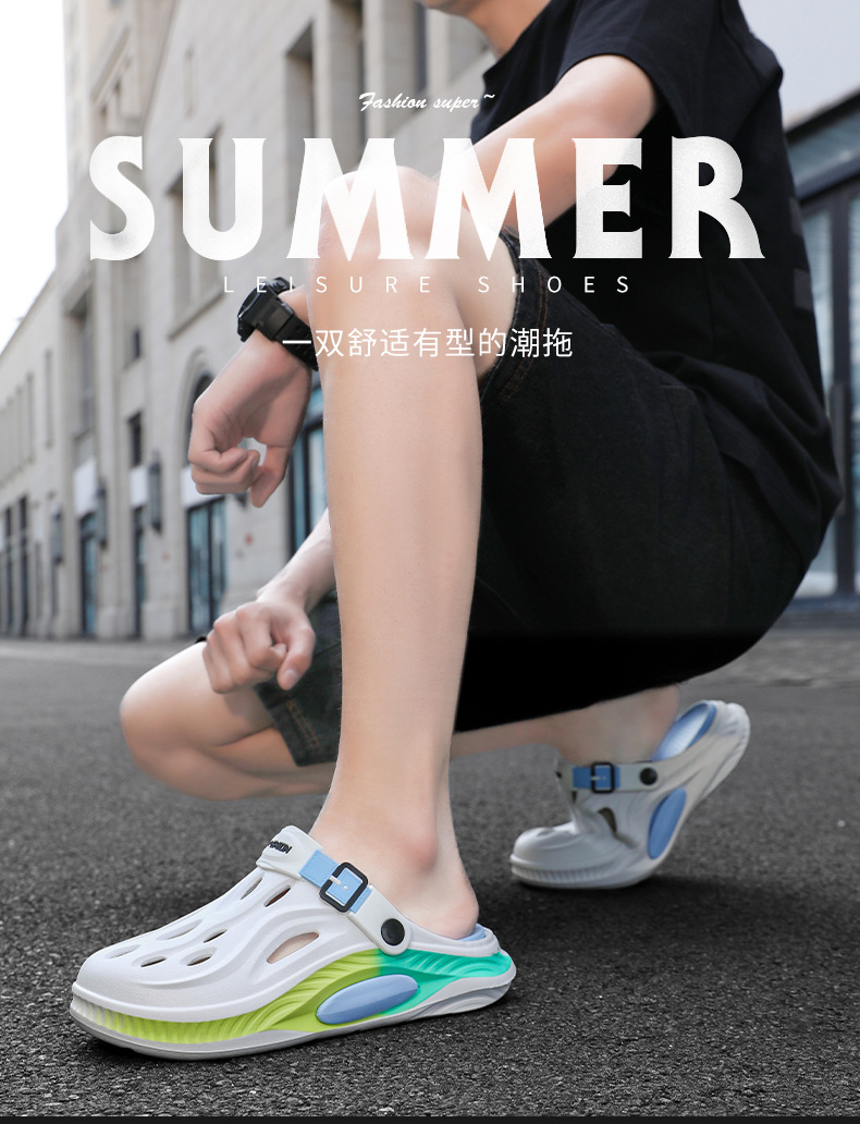 똥 밟는 느낌의 남성용 여름 바오터우 샌들, 두꺼운 밑창, 미끄럼 방지, 사무실 나막신, 아우터, 스포츠 및 레저용 비치 슬리퍼스토어 가기