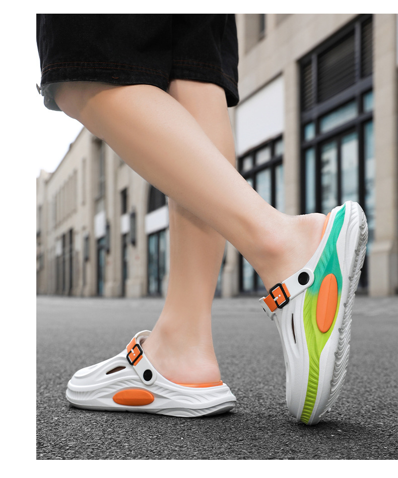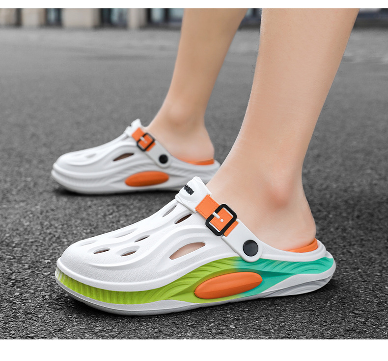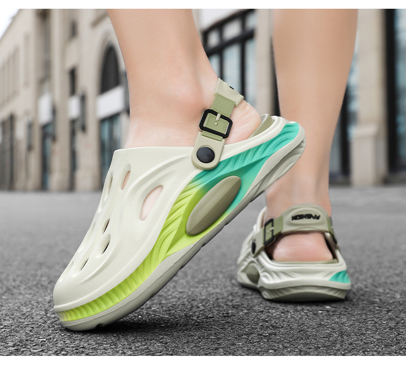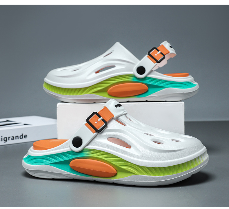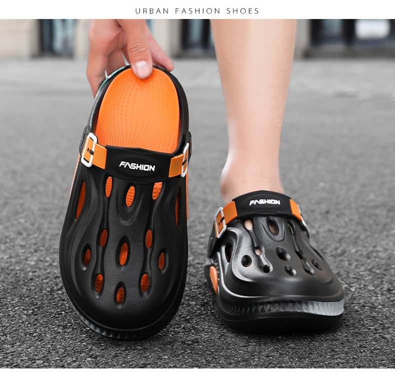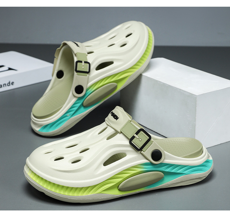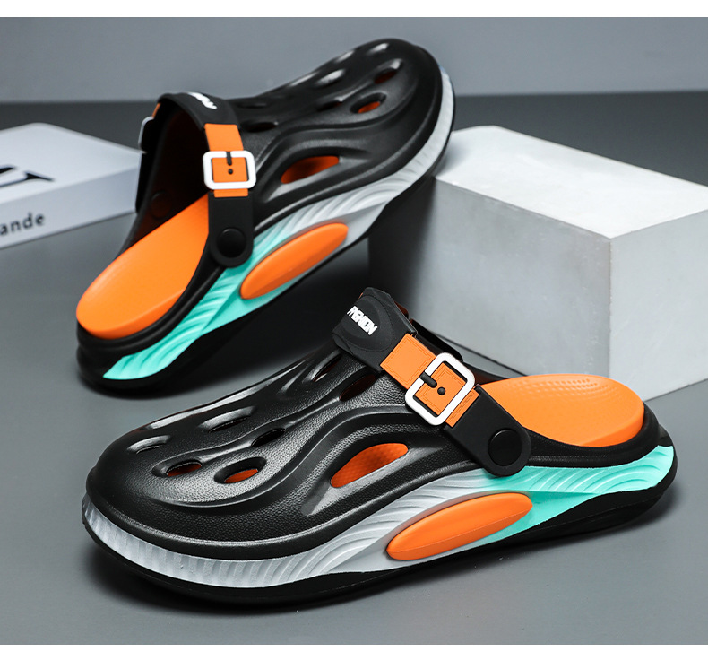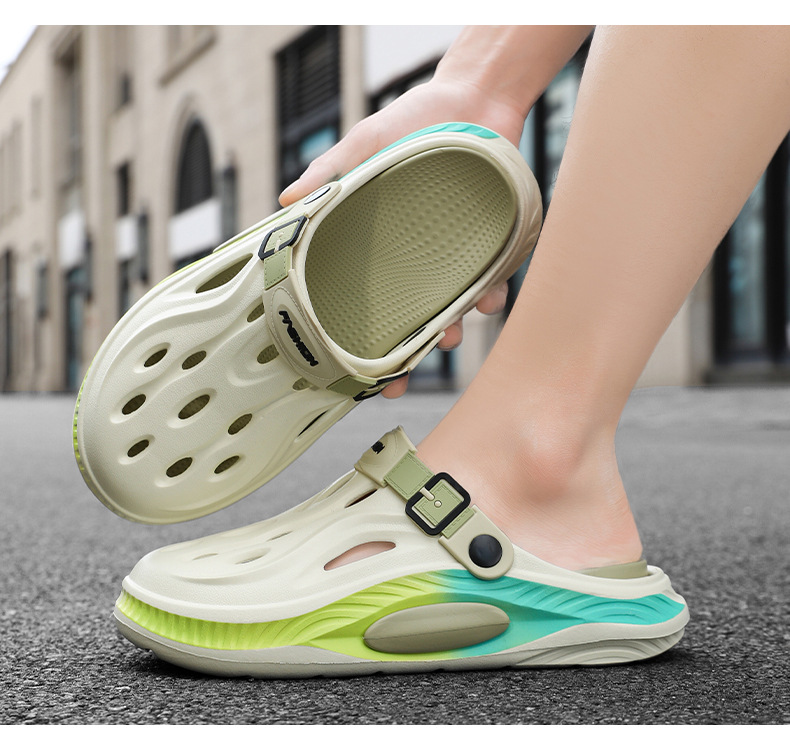 똥 밟는 느낌의 남성용 여름 바오터우 샌들, 두꺼운 밑창, 미끄럼 방지, 사무실 나막신, 아우터, 스포츠 및 레저용 비치 슬리퍼스토어 가기