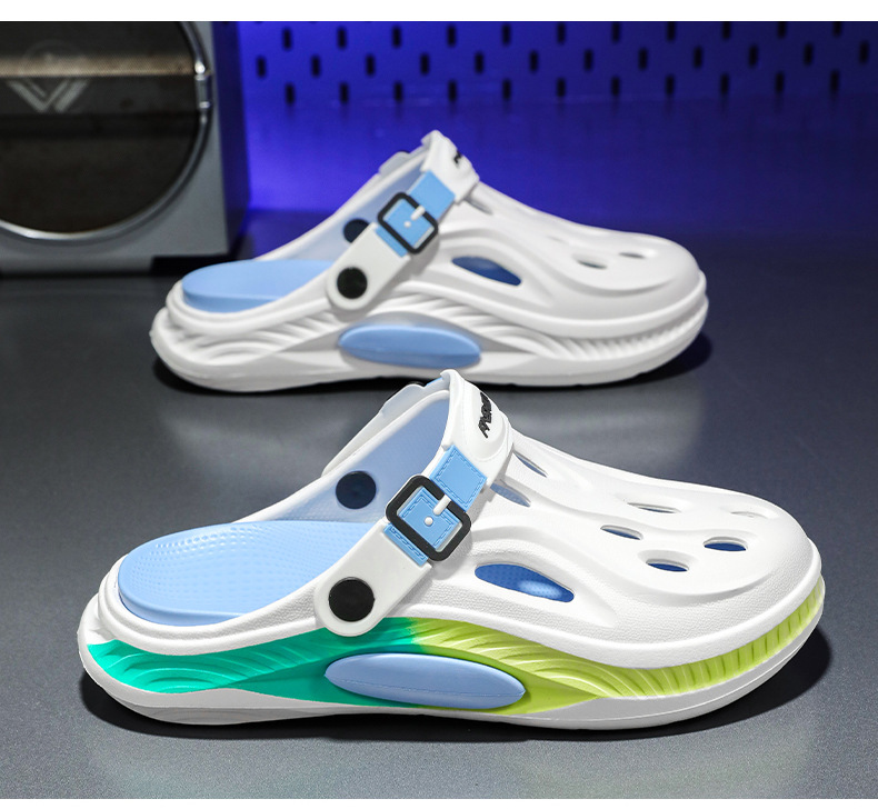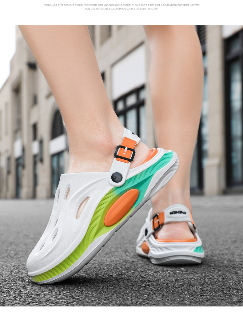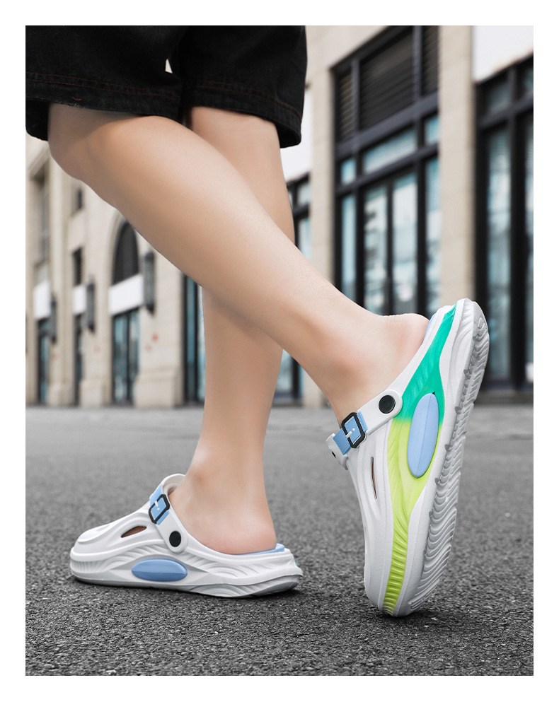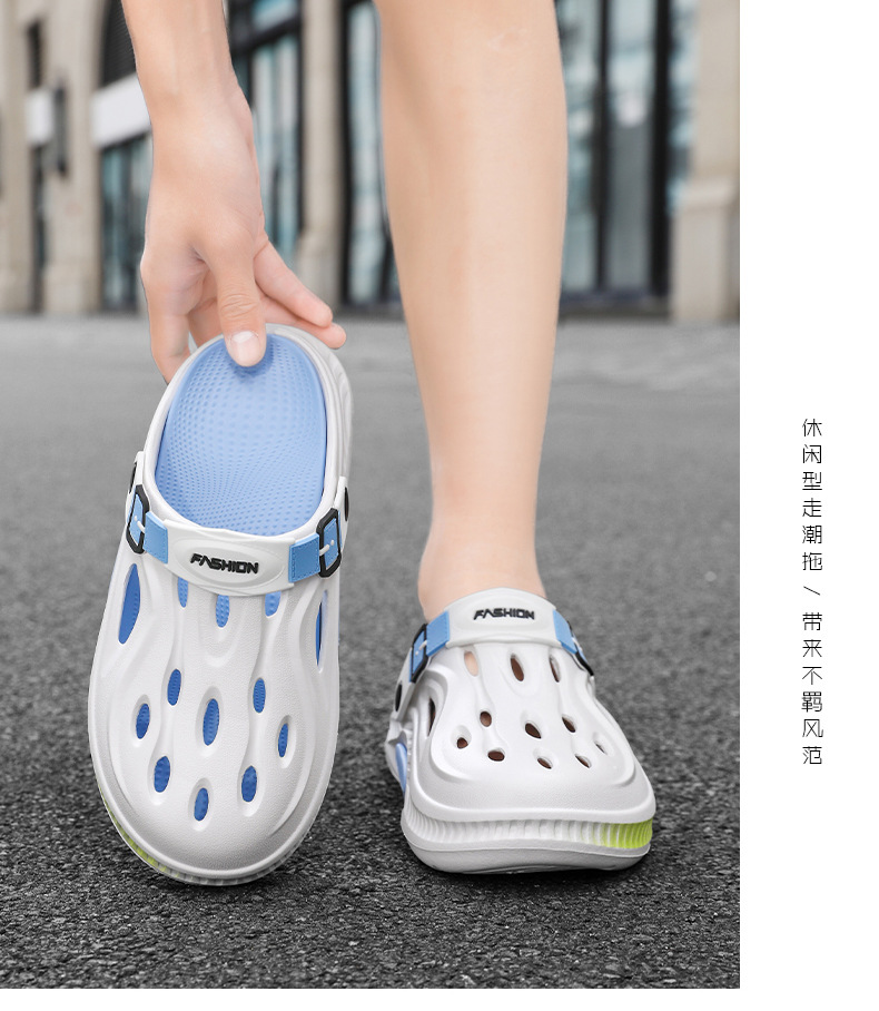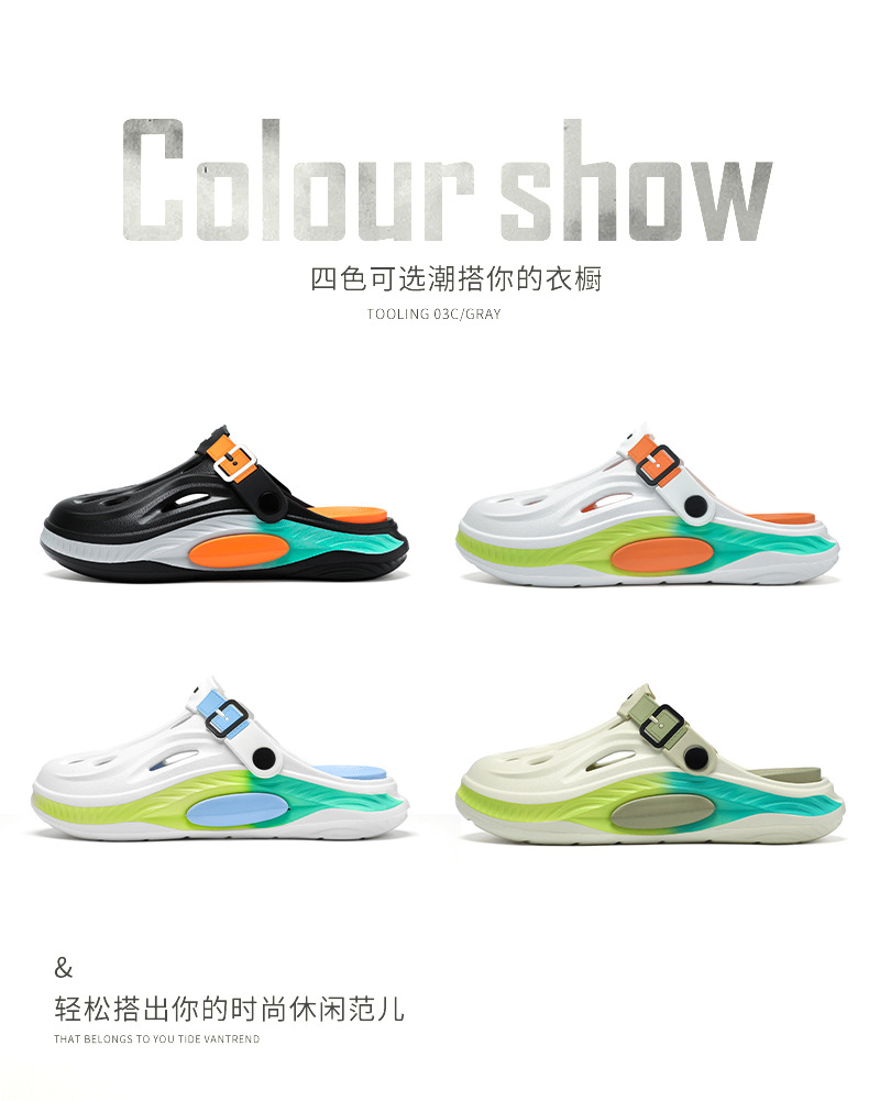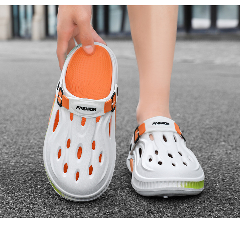 똥 밟는 느낌의 남성용 여름 바오터우 샌들, 두꺼운 밑창, 미끄럼 방지, 사무실 나막신, 아우터, 스포츠 및 레저용 비치 슬리퍼스토어 가기