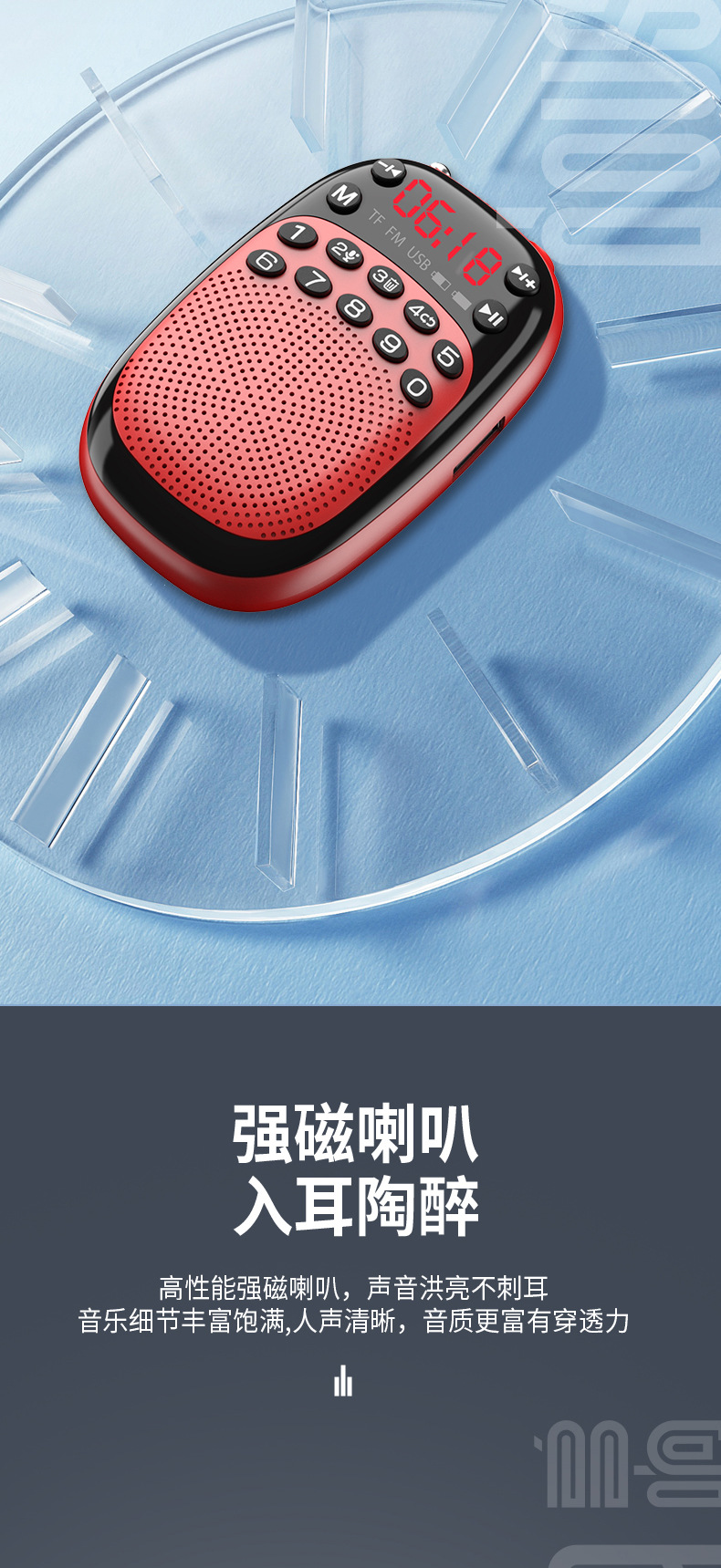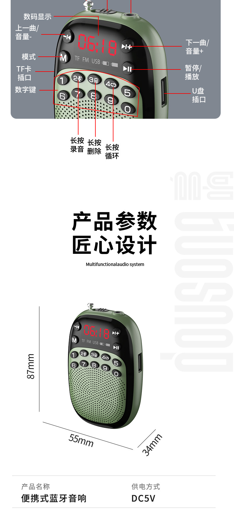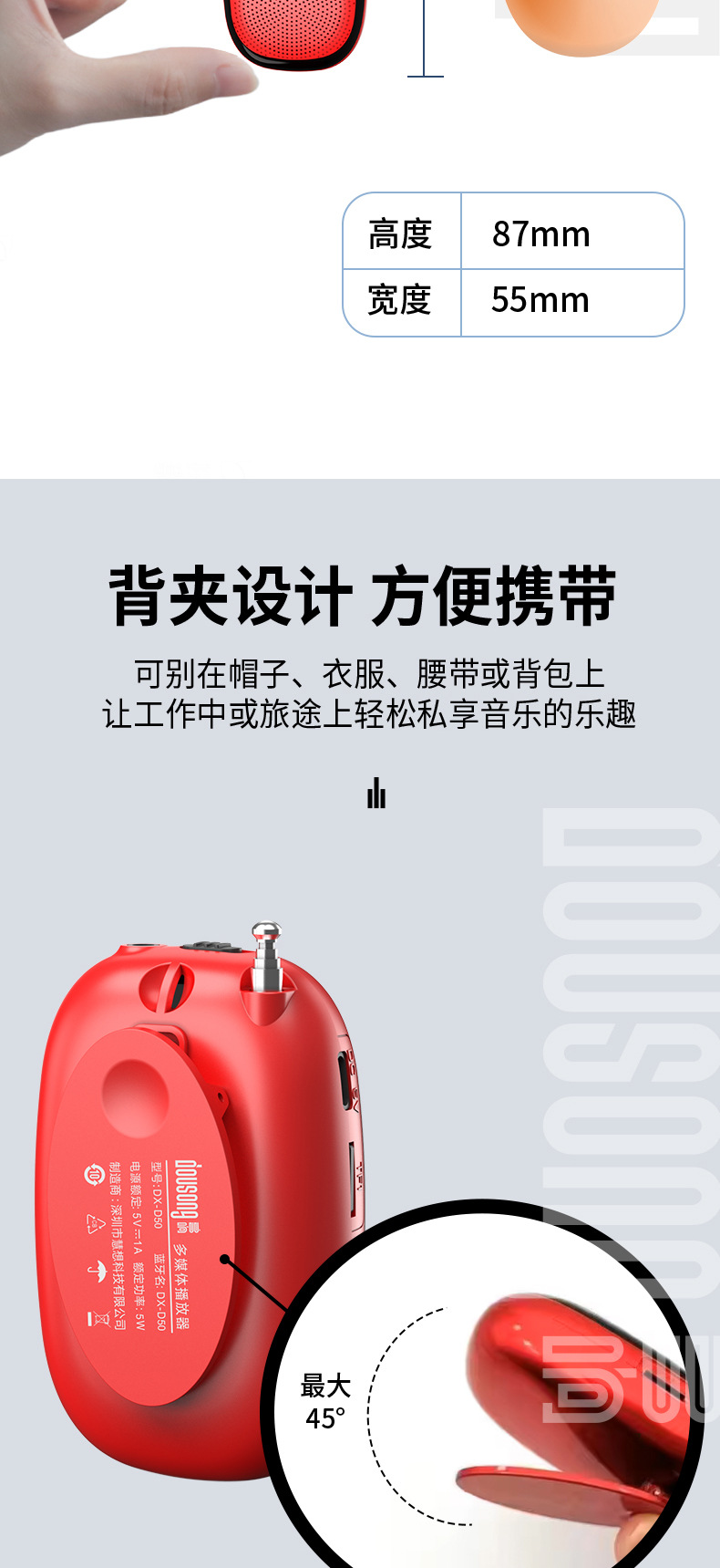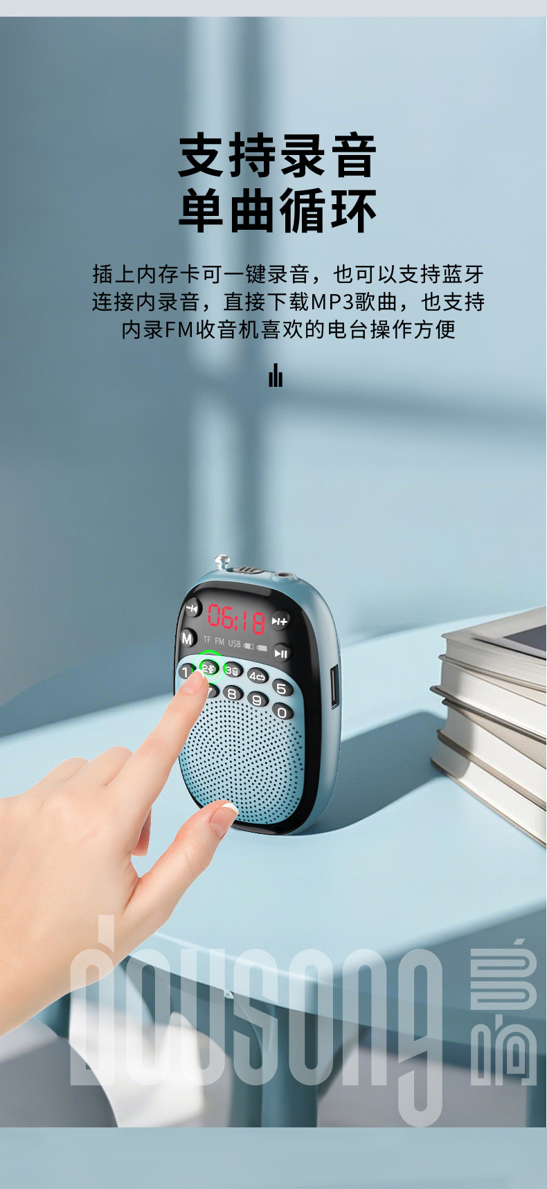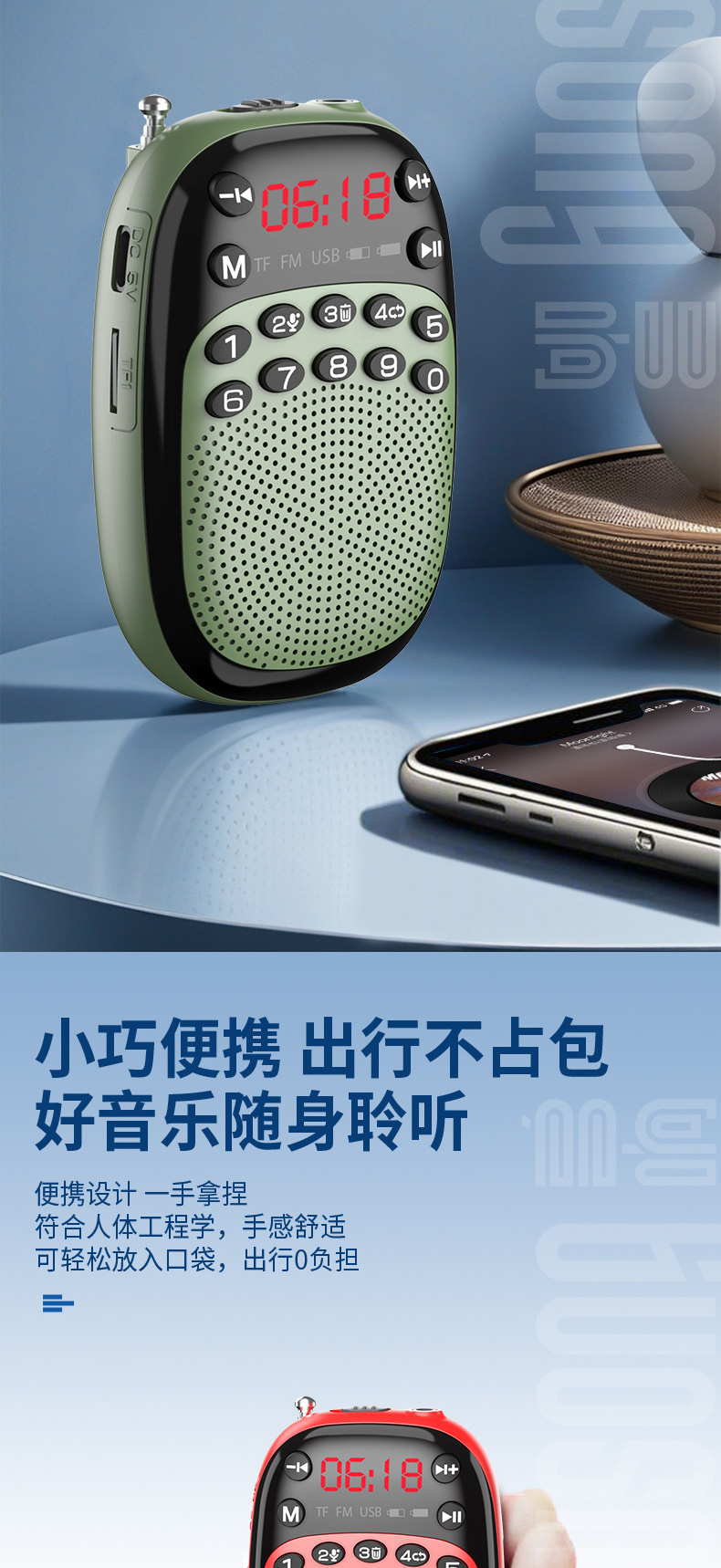노인 미니 포켓 카드 휴대용 작은 스피커 음악 플레이어를위한 멀티 링 DX-50 블루투스 라디오