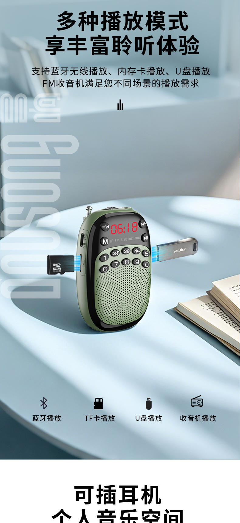 노인 미니 포켓 카드 휴대용 작은 스피커 음악 플레이어를위한 멀티 링 DX-50 블루투스 라디오스토어 가기