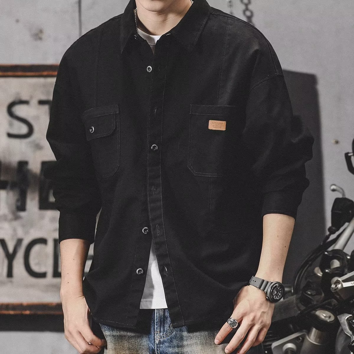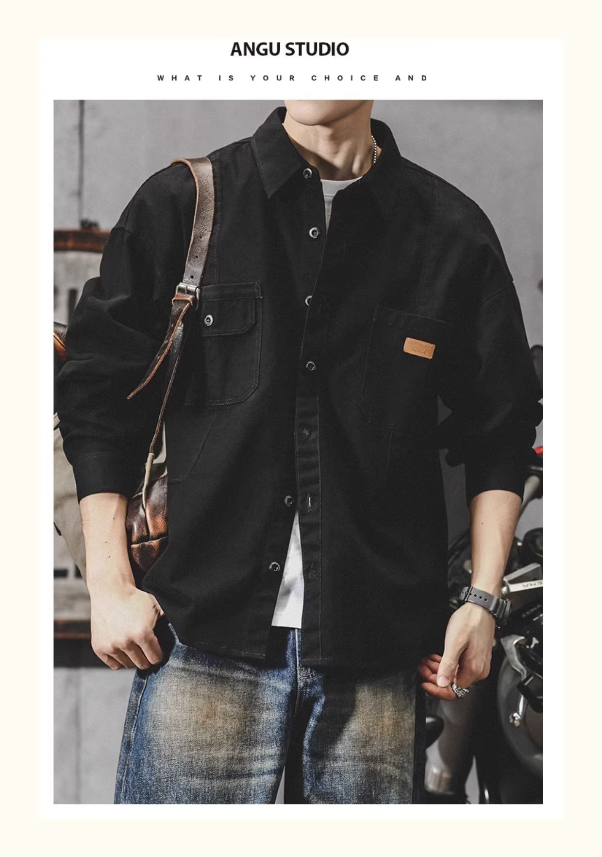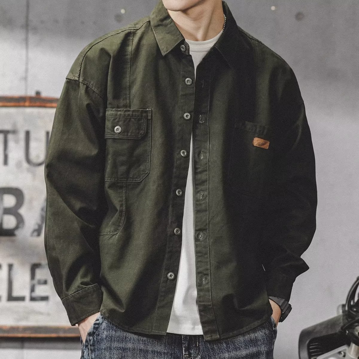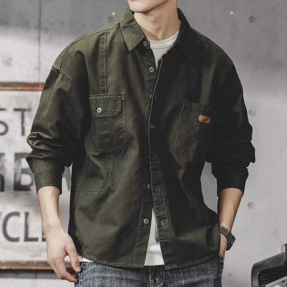 미국식 헤비 레트로 툴링 셔츠 남성용 긴팔 느슨한 사냥 재킷 봄과 가을 재킷 플러스 사이즈 탑 옷스토어 가기