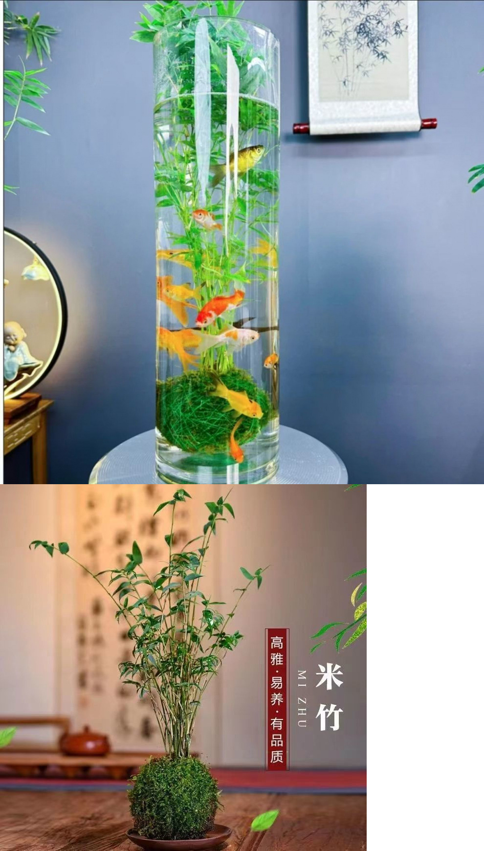 뿌리가 있는 미나리 수경 어항 유리병, 이끼 공 식물, 실내 선식 화분, 피닉스 꼬리 대나무, 관음대나무, 대나무스토어 가기