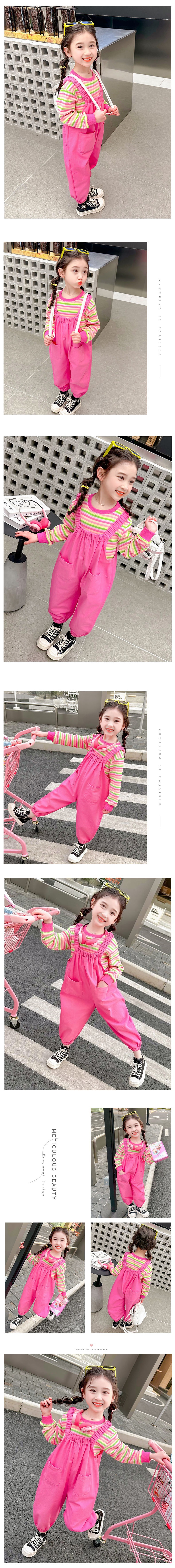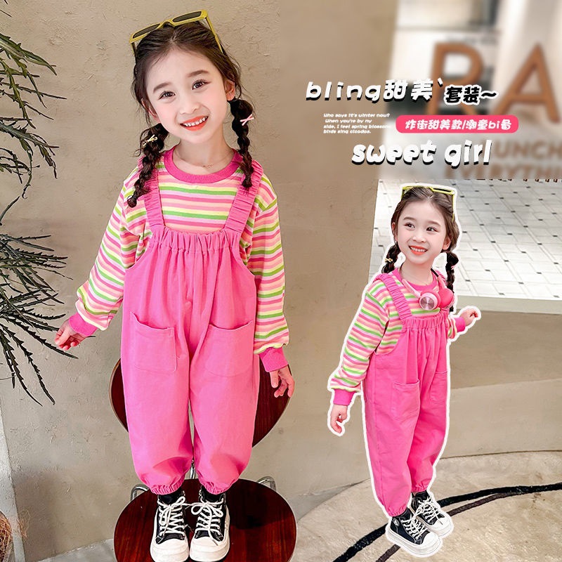 소녀 세트 2024 새로운 유행 서양식 아동복 아기 소녀 봄과 가을 줄무늬 탑 투피스 세트스토어 가기