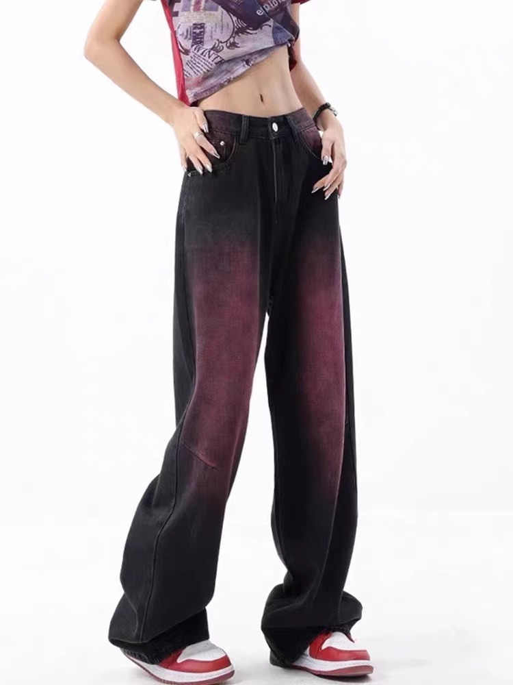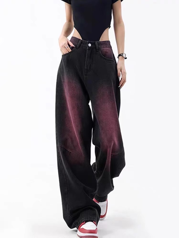 보라색 스키니 블랙 와이드 레그 청바지 여성용 봄 봄과 여름 플러스 사이즈 배 모양의 바디 팬츠스토어 가기