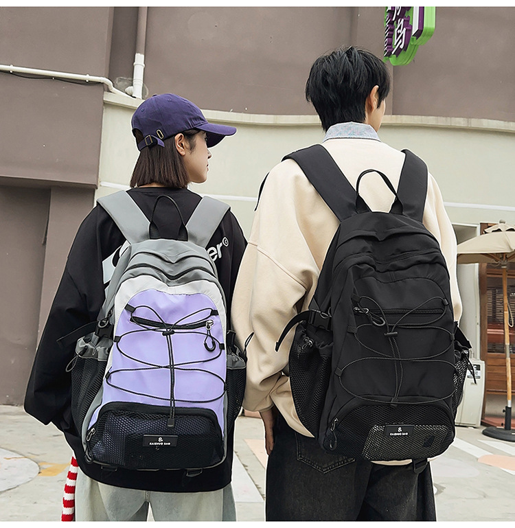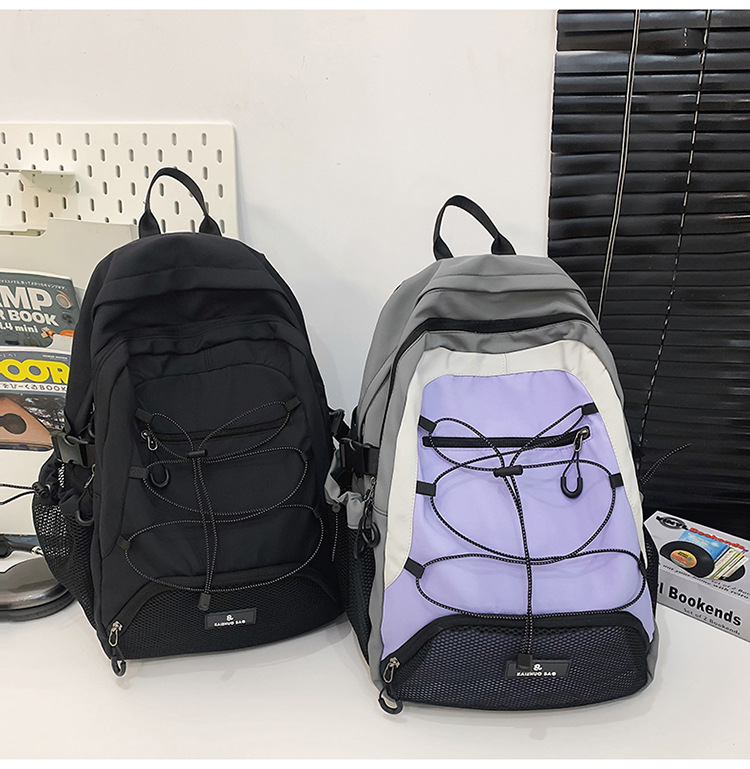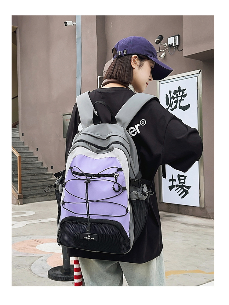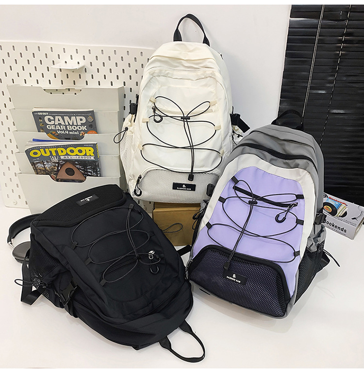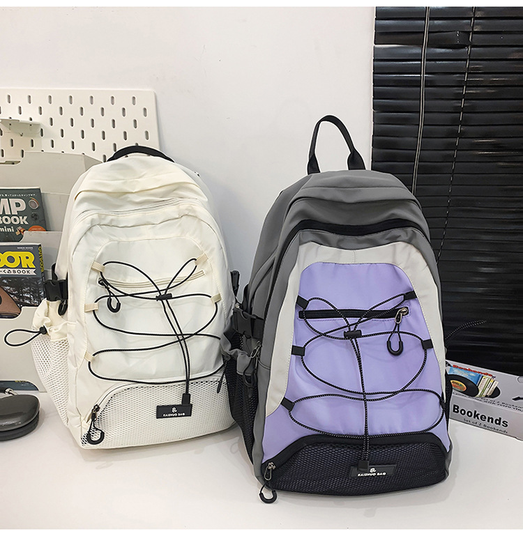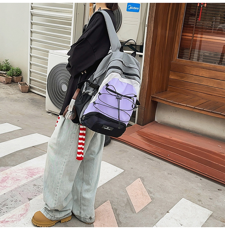 2024 새로운 Colorblock 배낭 야외 경량 캐주얼 레트로 스포츠 등산 가방 Drawstring Backpack 학생 Schoolbag