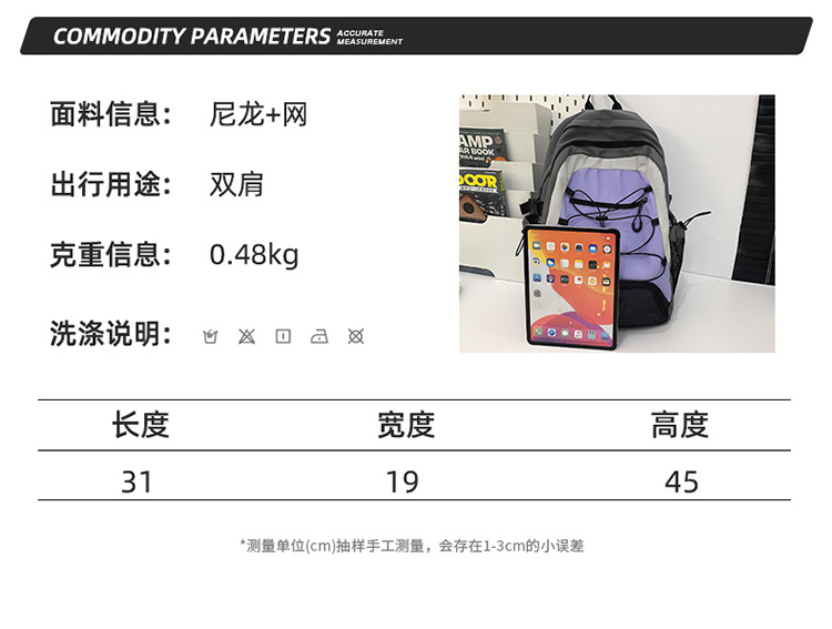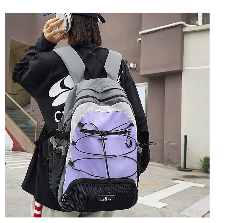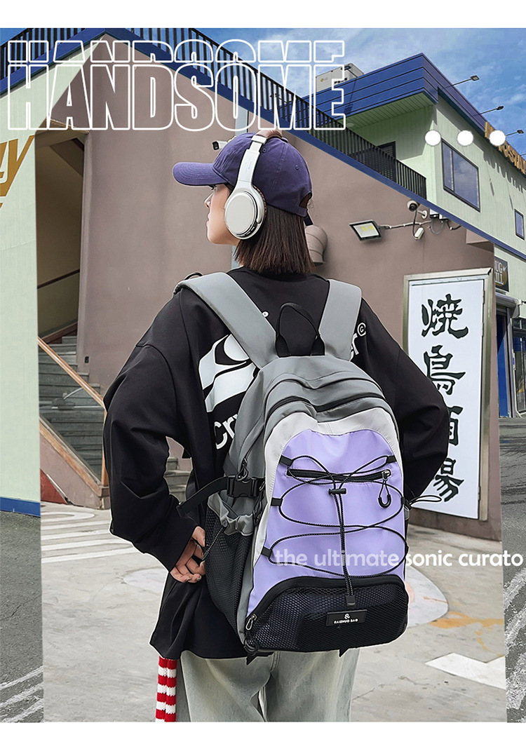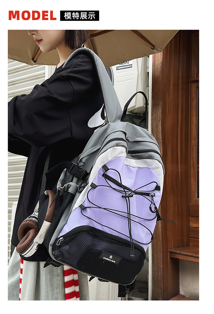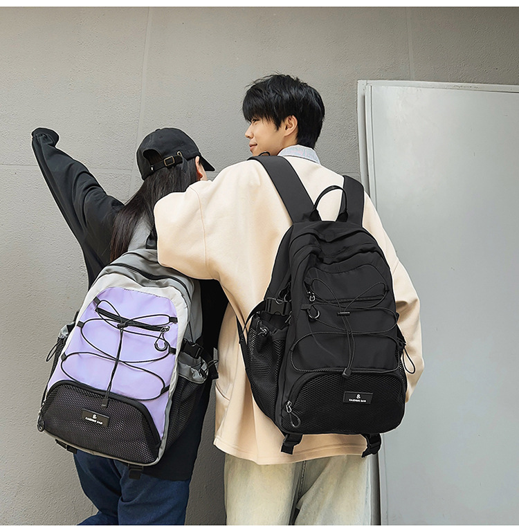 2024 새로운 Colorblock 배낭 야외 경량 캐주얼 레트로 스포츠 등산 가방 Drawstring Backpack 학생 Schoolbag