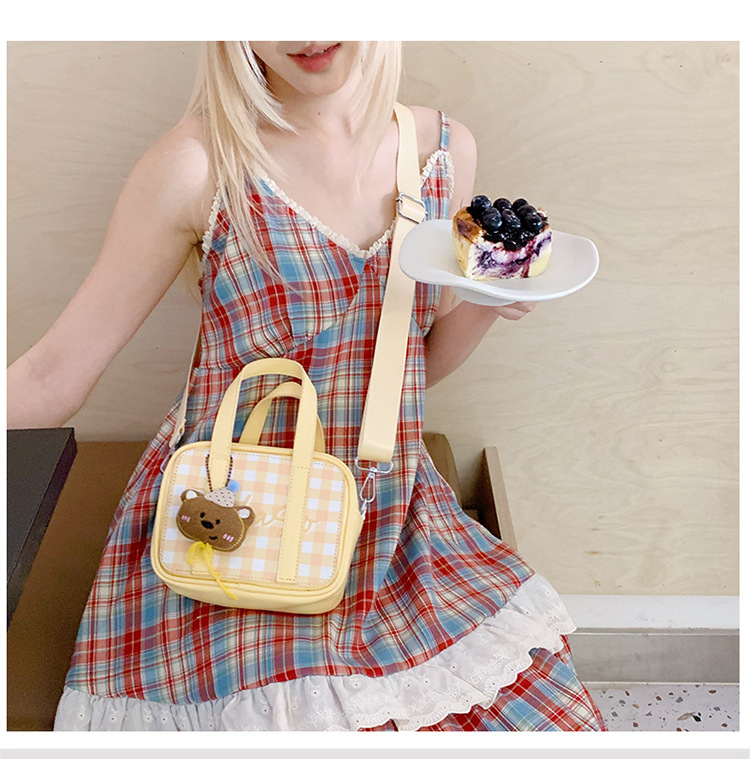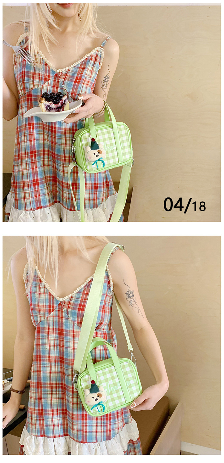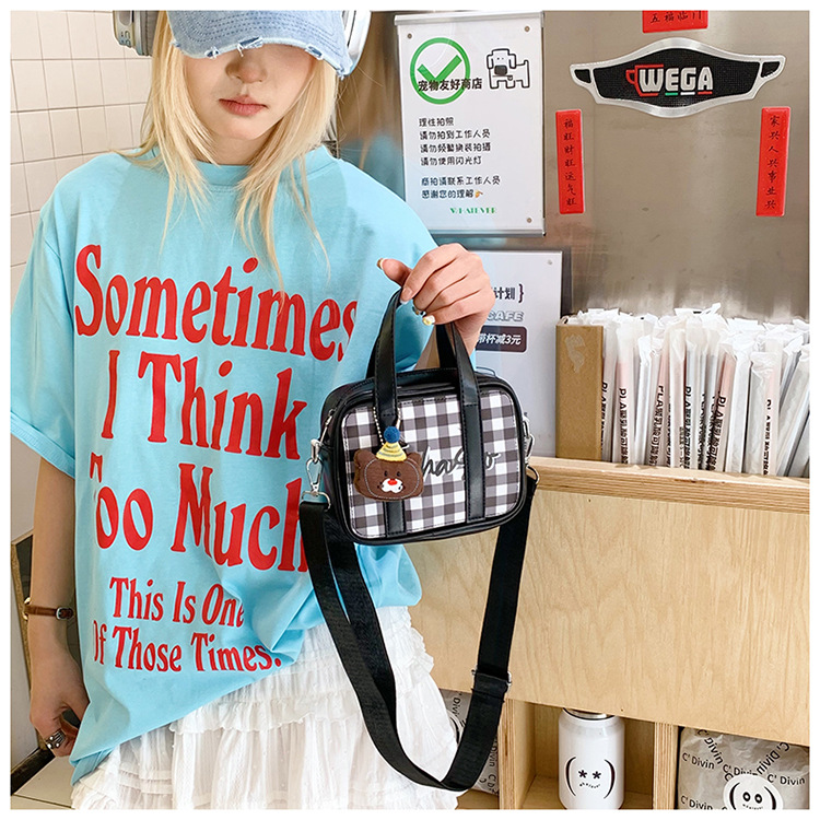 한국 인 스타일 신선한 체크 무늬 휴대용 작은 사각형 가방 2025 새로운 여름 새로운 외국 스타일 소녀 메신저 가방 어깨스토어 가기