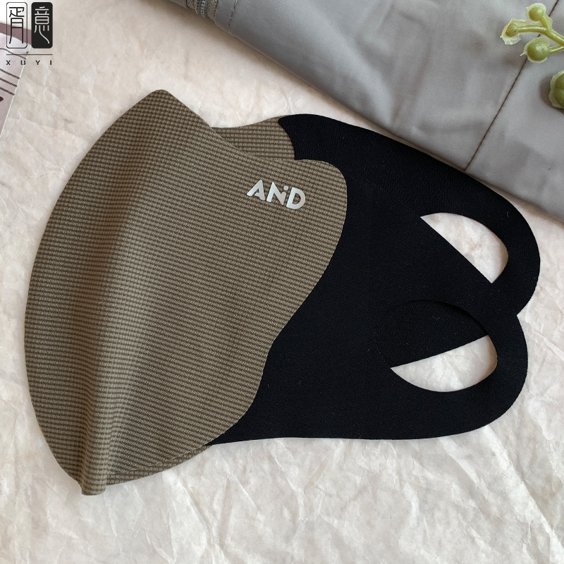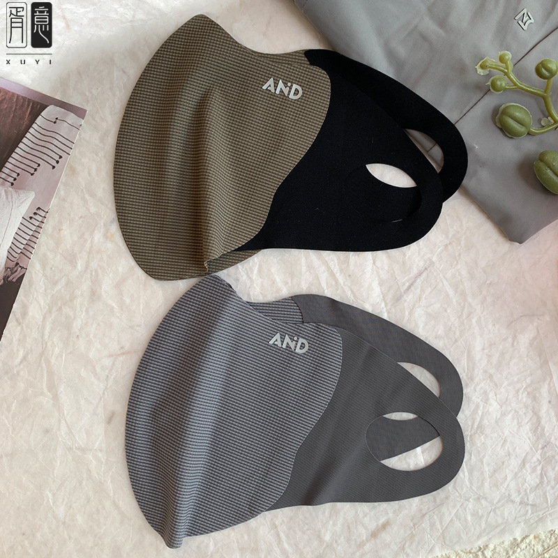 • 카키+그레이 2팩 - 체크무늬 문자 심리스 입체 자외선 차단 마스크