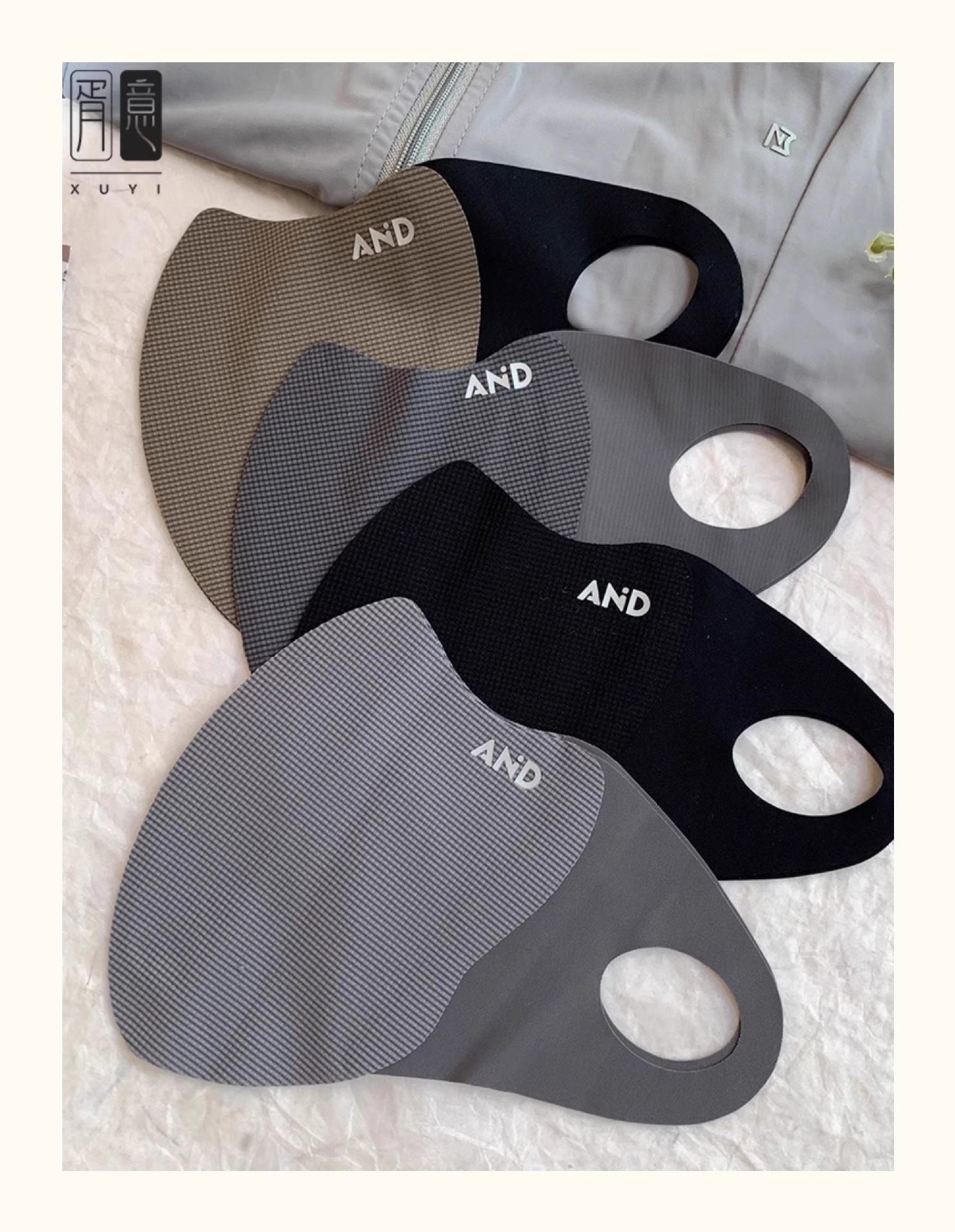• 회색 체크무늬 문자 심리스 입체 자외선 차단 마스크
