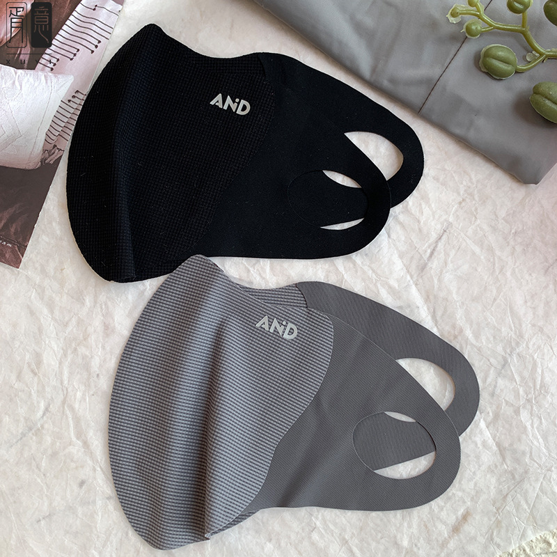 • 블랙 + 그레이 2팩 - 격자무늬 문자 심리스 입체 자외선 차단 마스크