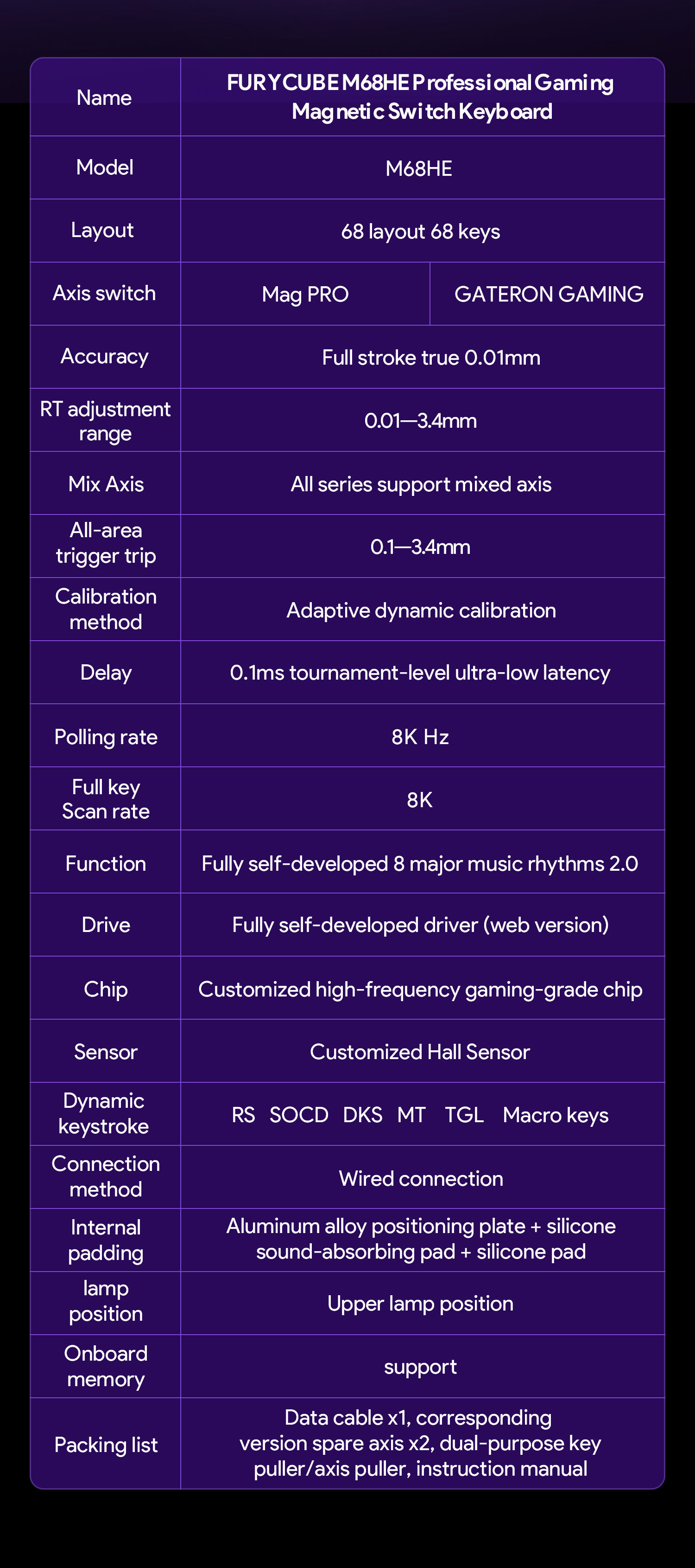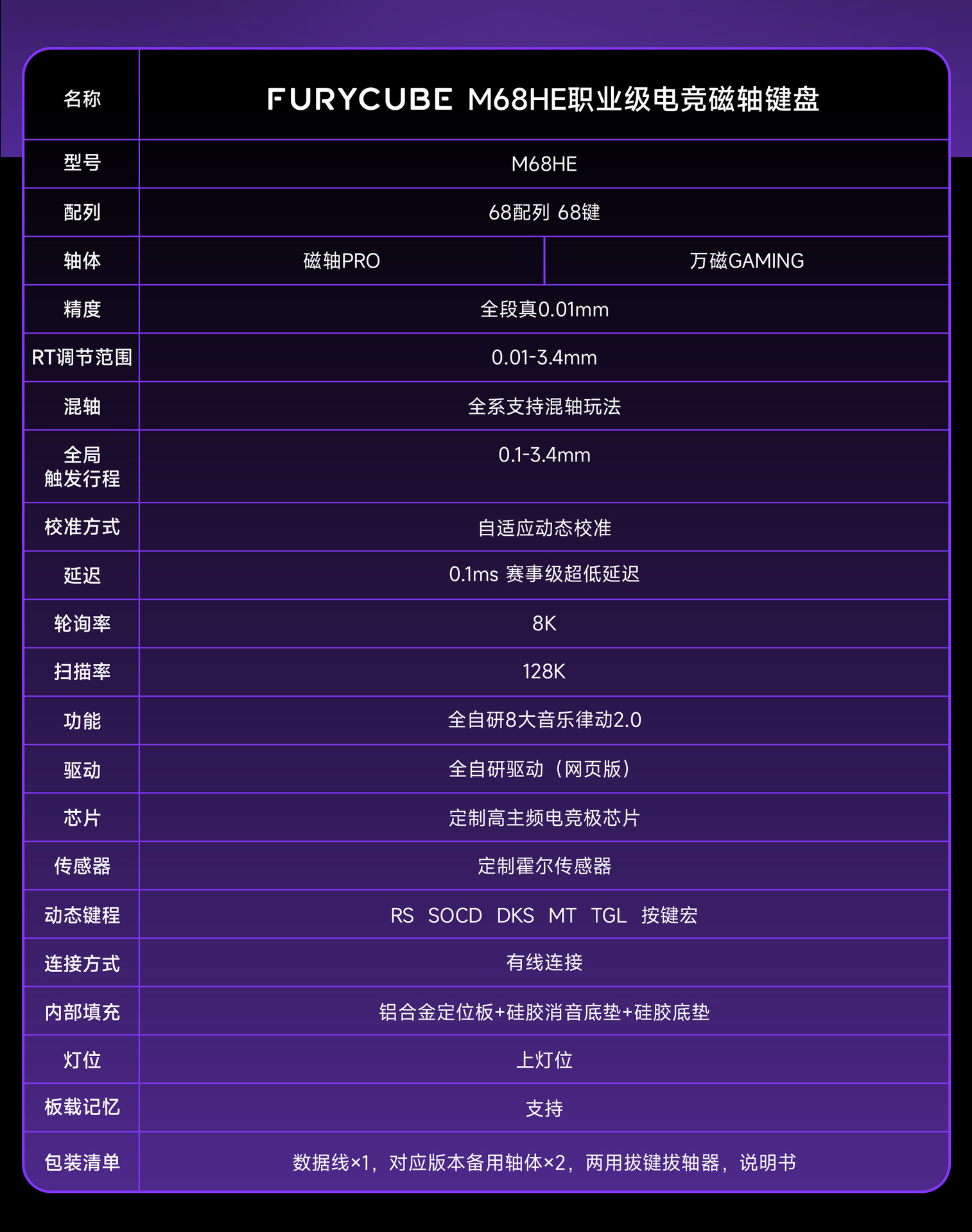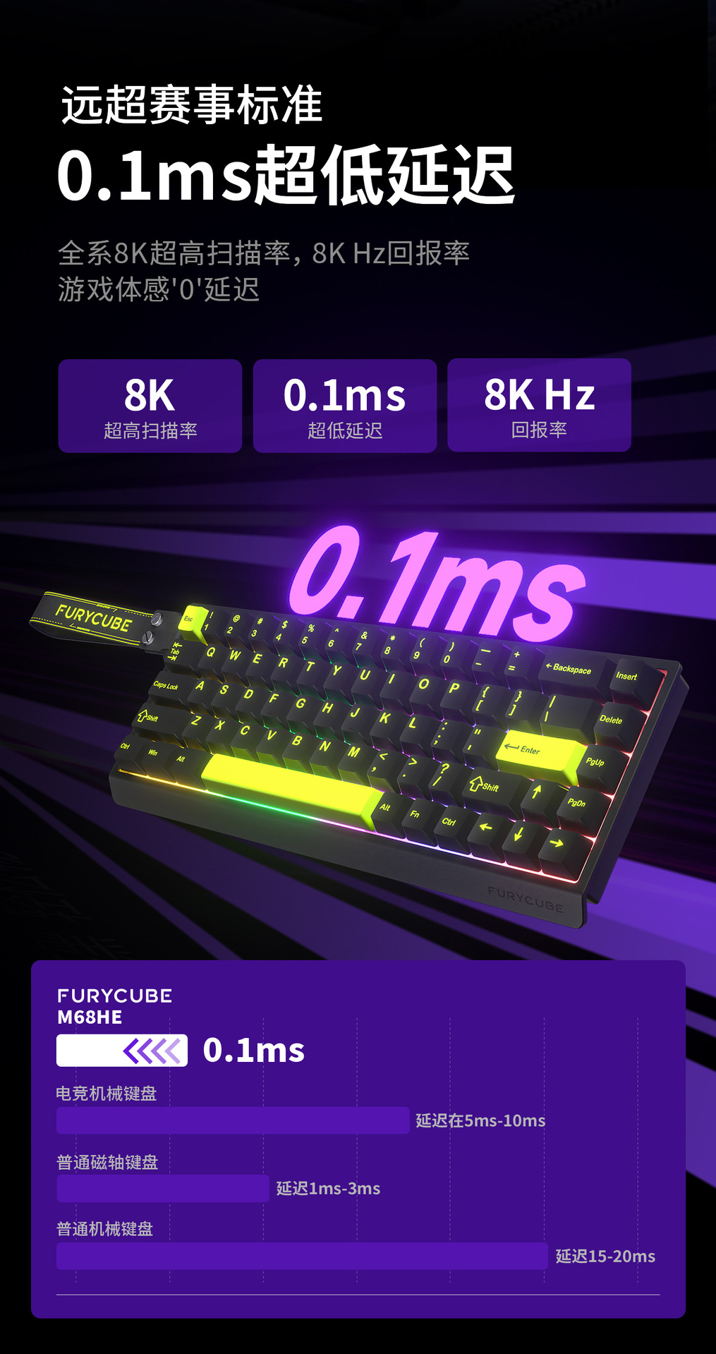 FURYCUBE M68HE 전문 전기 경쟁 자기 축 키보드 8K 반환 속도 RT 키보드 조정 가능한 키 범위