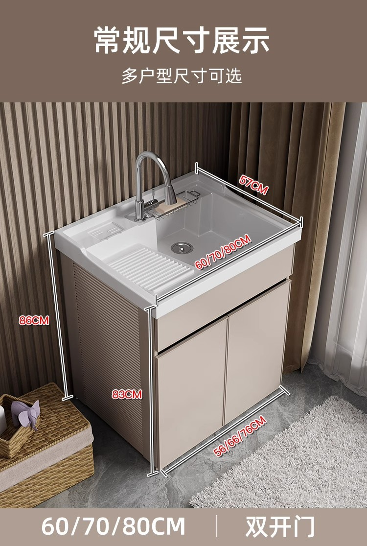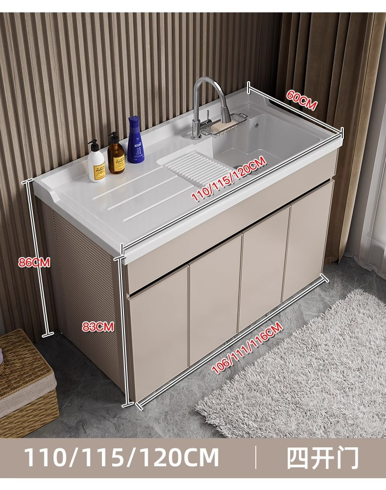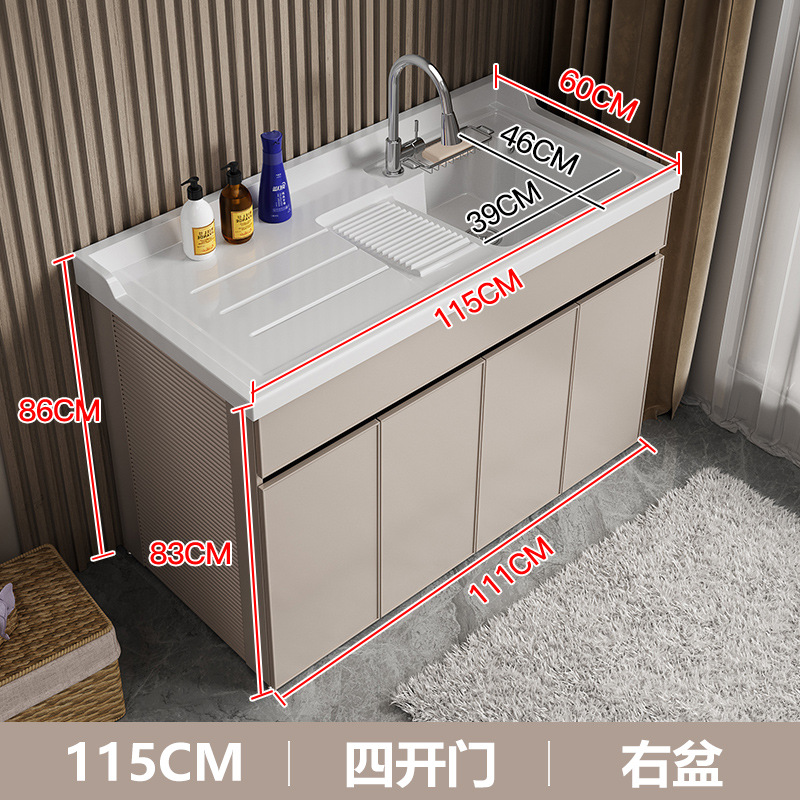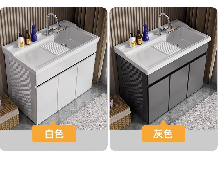 발코니 세탁 캐비닛 일체형 캐비닛 조합 공간 알루미늄 세면대 세탁조 대형 석영석 세탁조 일체형 세면대