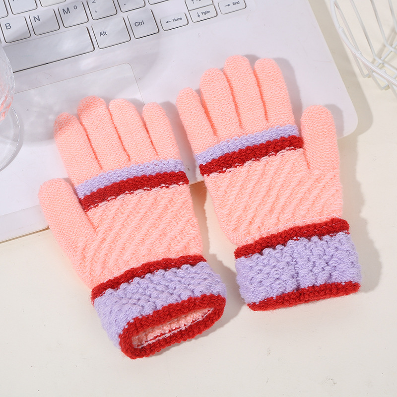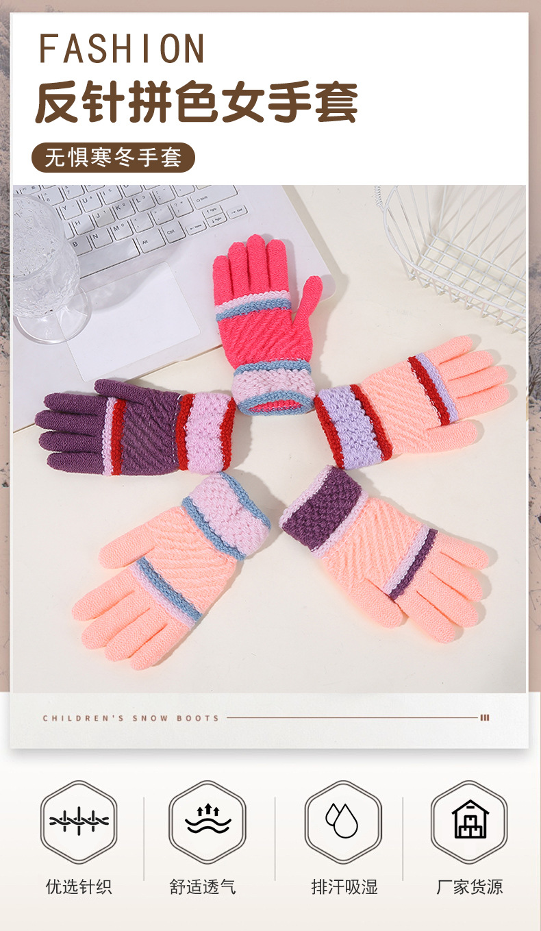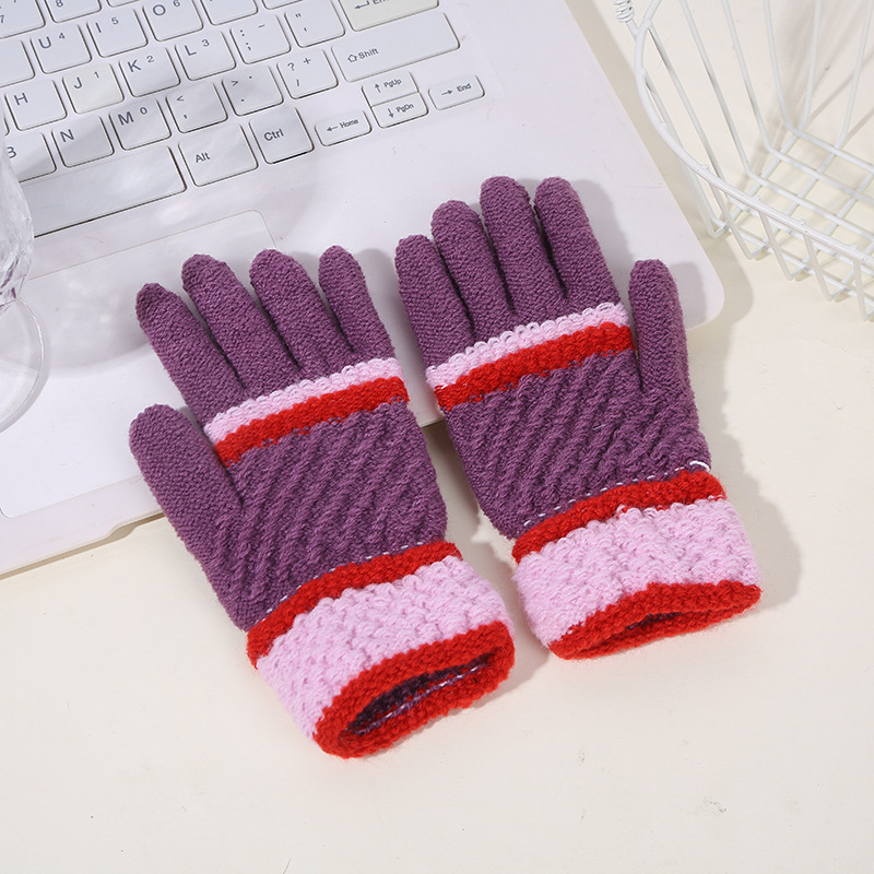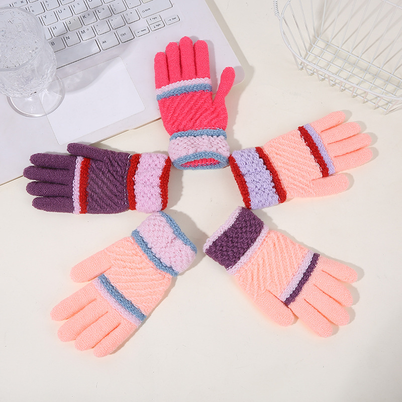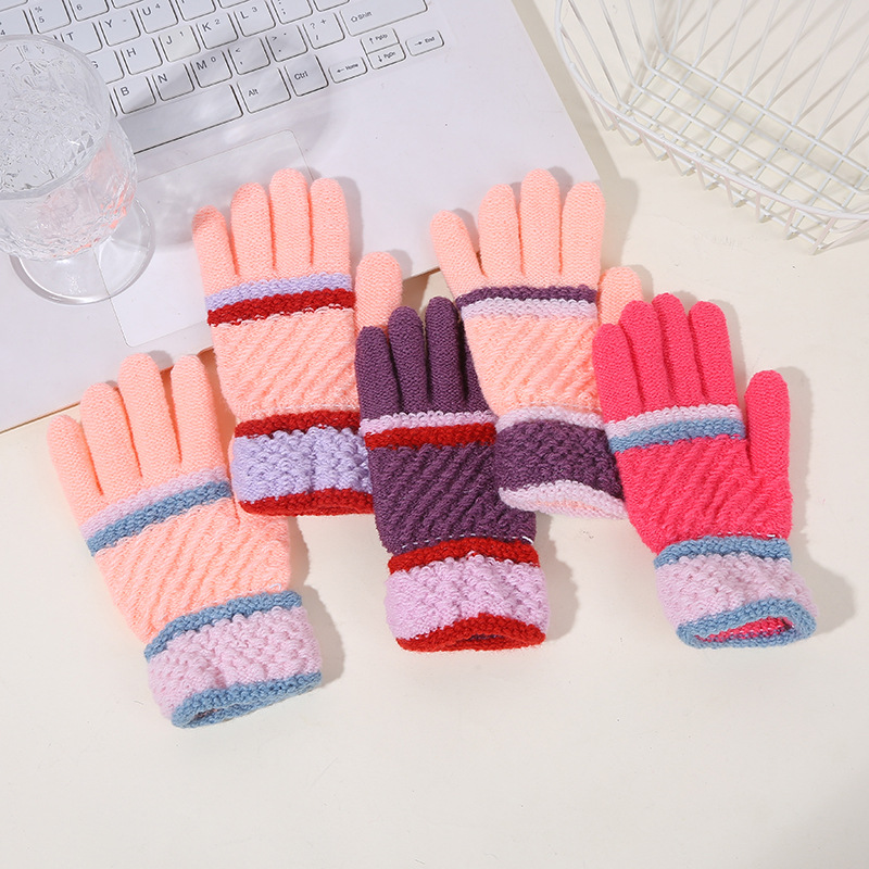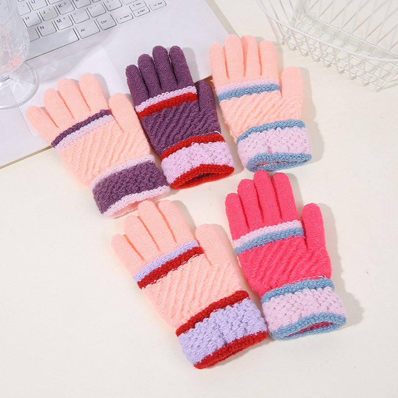 한국 스타일 학생 사이클링 니트 역방향 바느질 컬러 블록 장갑 여성용 겨울 따뜻한 플러스 벨벳 두꺼운 손가락 장갑 도매