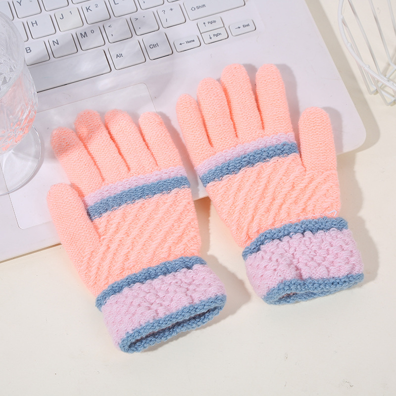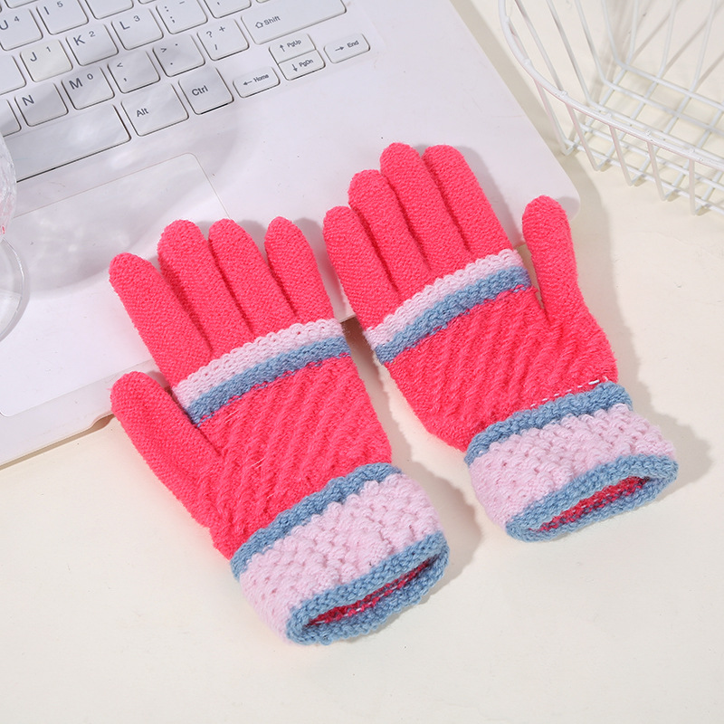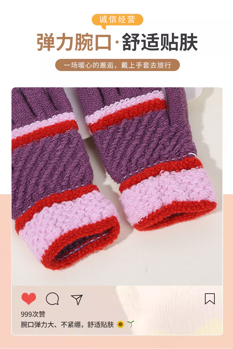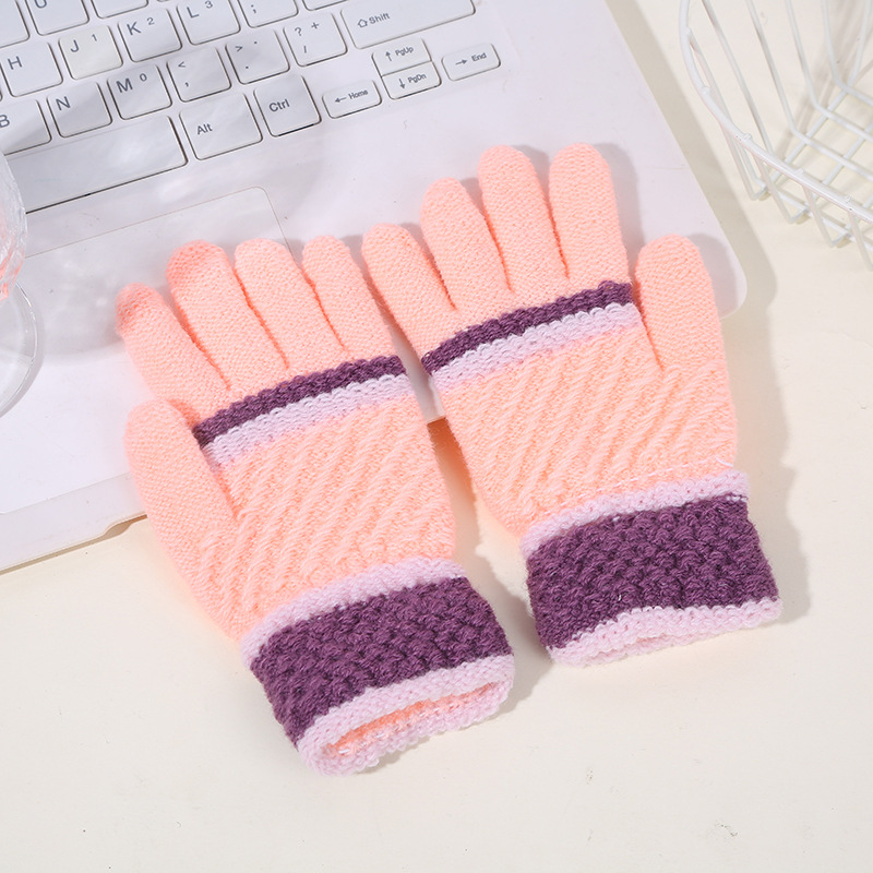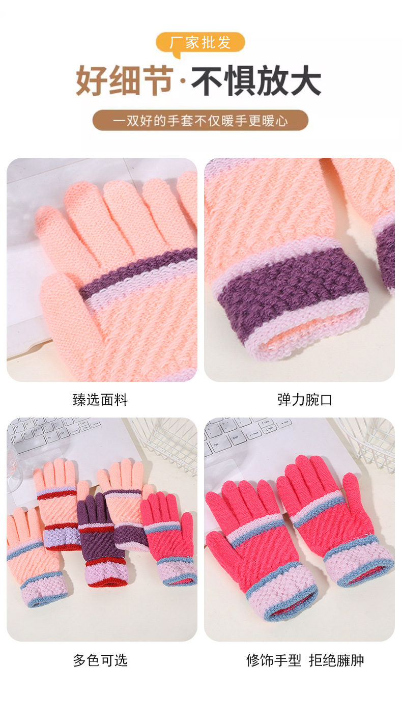 한국 스타일 학생 사이클링 니트 역방향 바느질 컬러 블록 장갑 여성용 겨울 따뜻한 플러스 벨벳 두꺼운 손가락 장갑 도매