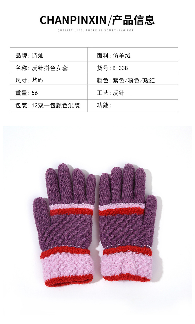 한국 스타일 학생 사이클링 니트 역방향 바느질 컬러 블록 장갑 여성용 겨울 따뜻한 플러스 벨벳 두꺼운 손가락 장갑 도매스토어 가기
