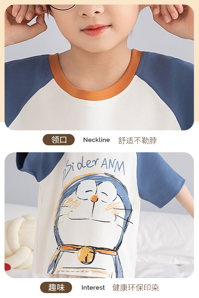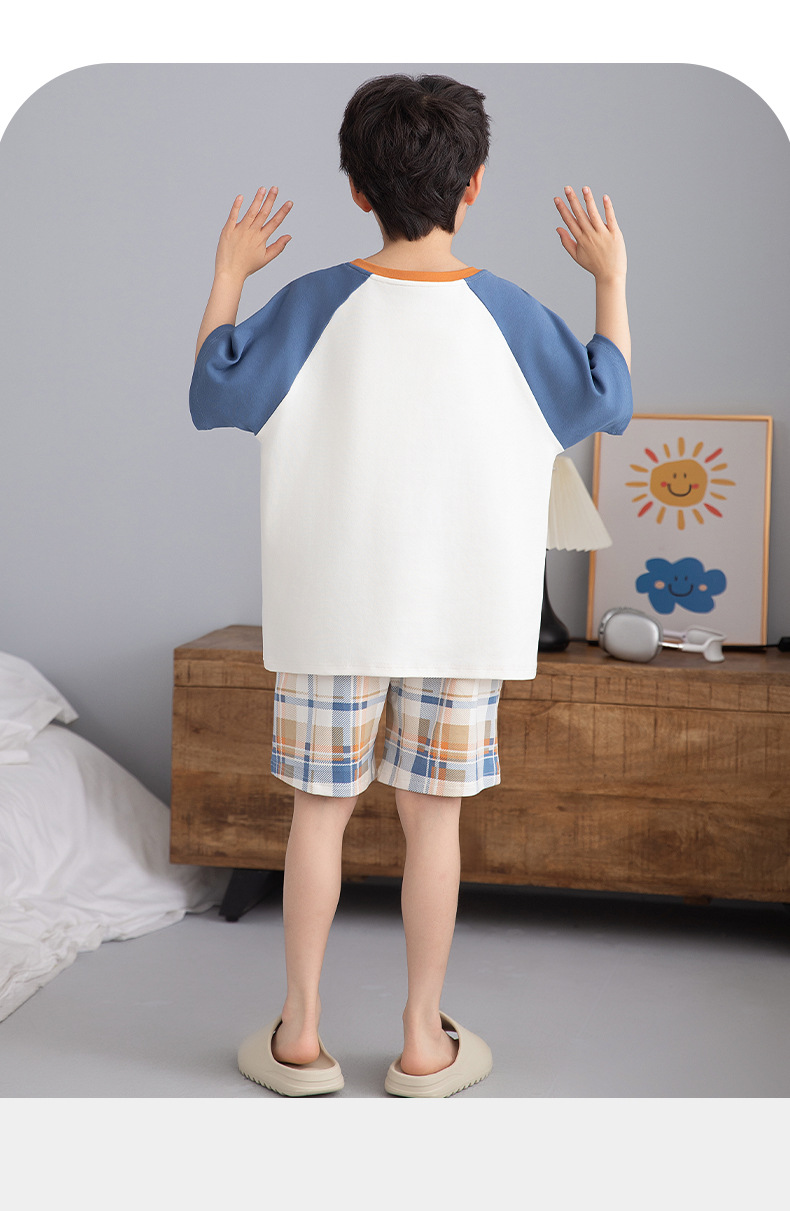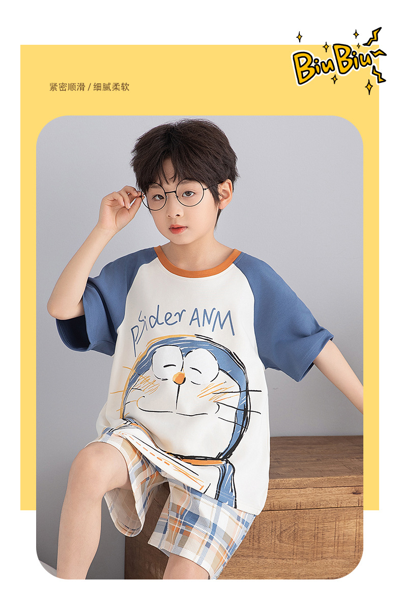 소년 잠옷 여름 순수 면화 반팔 어린이 귀여운 만화 중대형 어린이 잘 생긴 소년 얇은 가정 의류 세트스토어 가기