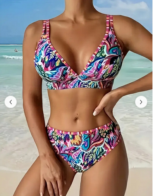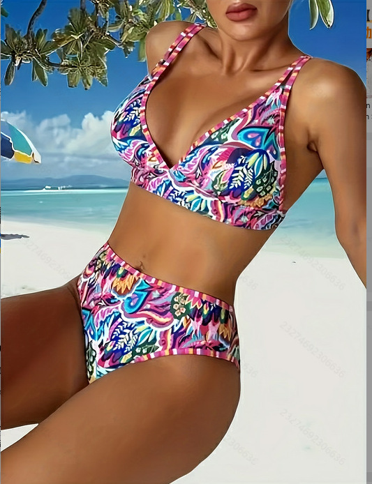 새로운 프린트 홀터넥 비치 비키니 수영복 유럽과 미국의 패션 하이 엔드 비치 스플릿 수영복 여성용