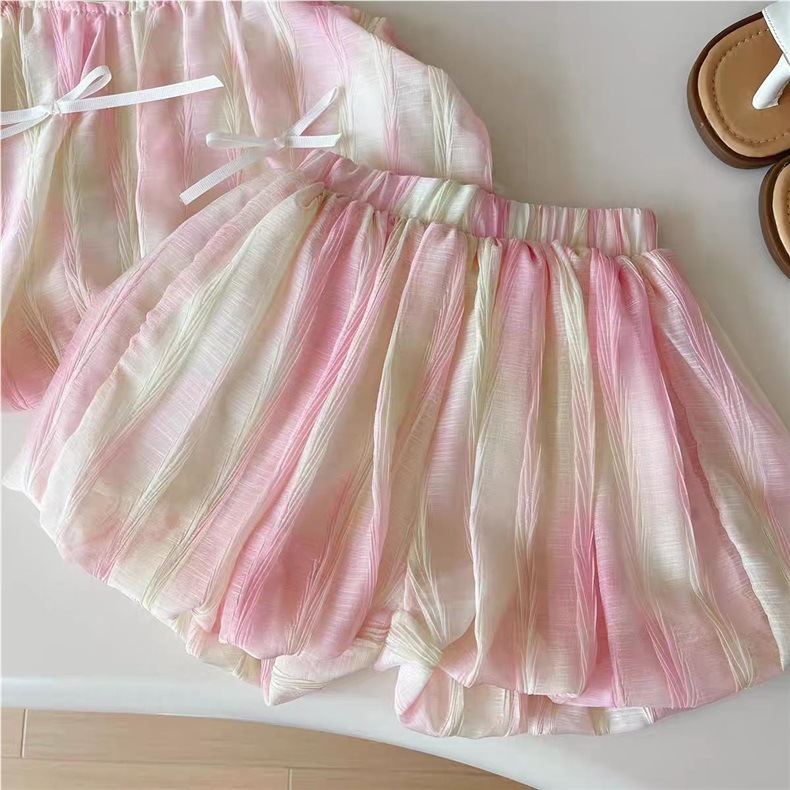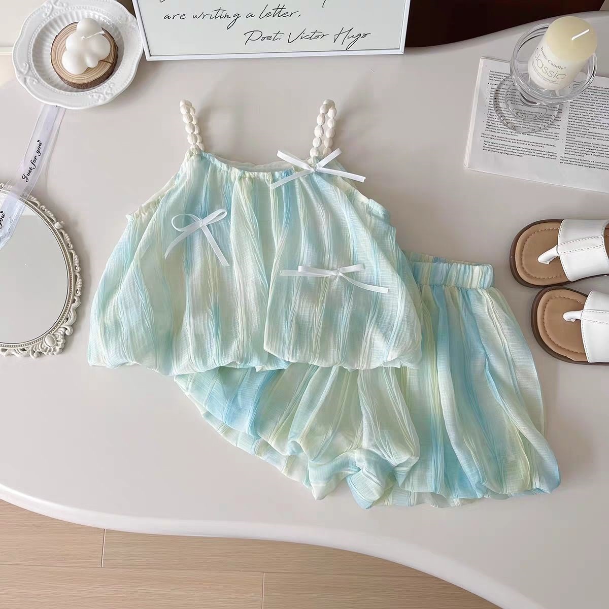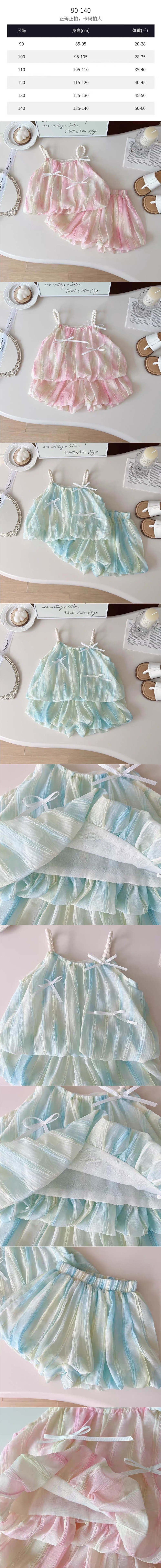 모리 소녀의 여름 원피스 세트 2024 새로운 어린이 반바지 슬링 투피스 세트 여름 서양식 아기 소녀