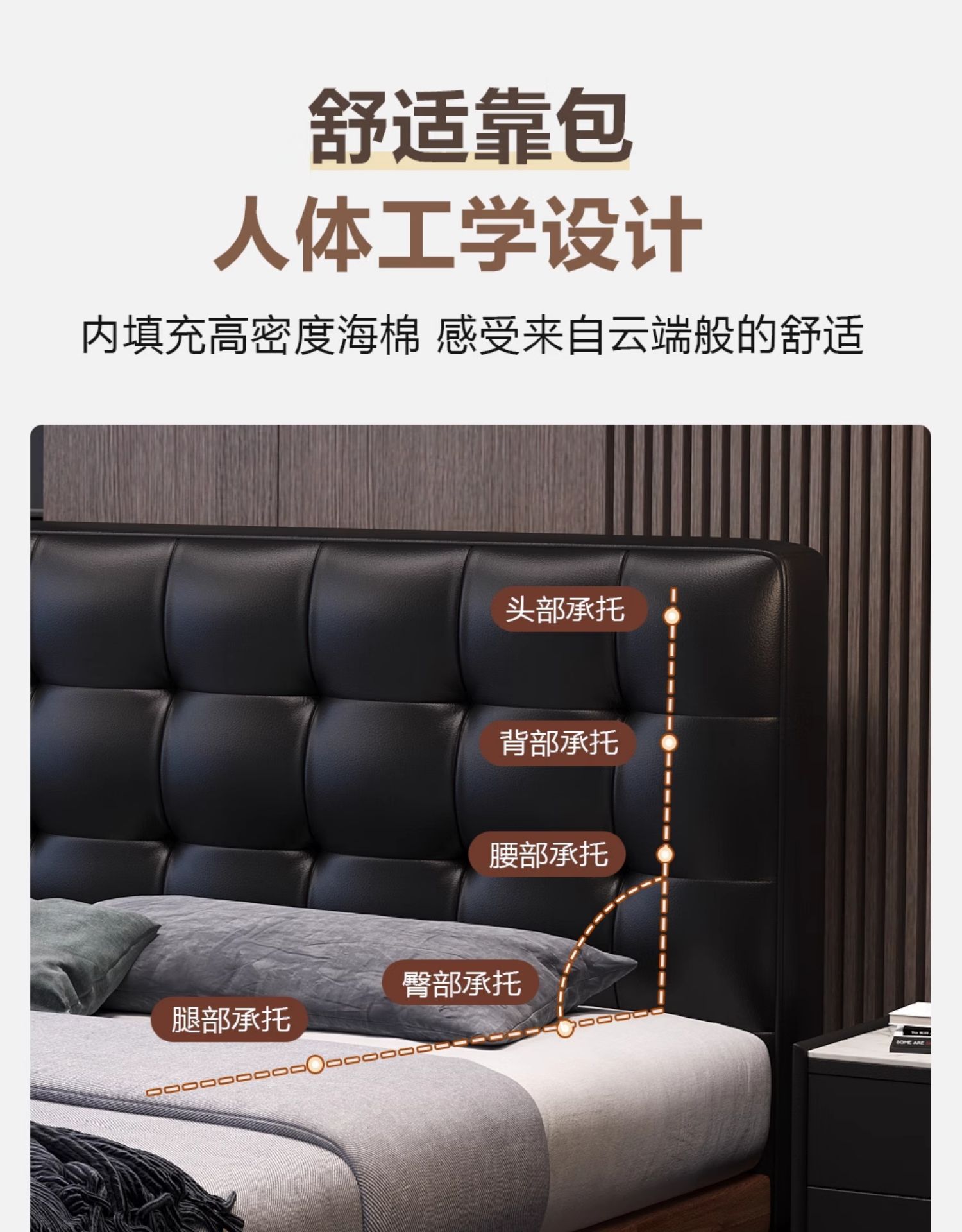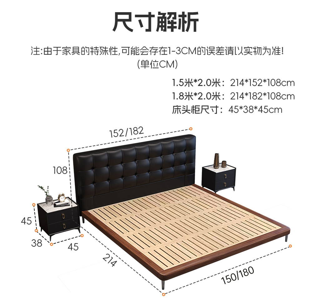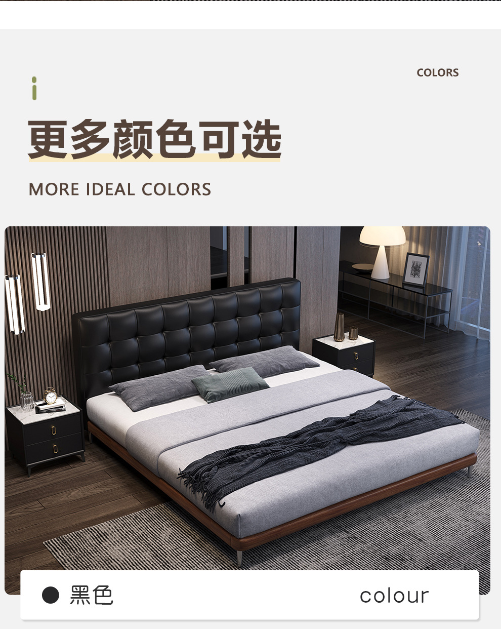 가죽 침대 골동품 와플 이탈리아 미니멀리스트 마스터 침실 더블 침대 레트로 블랙 솔리드 우드 에지 소프트 백 웨딩 침대