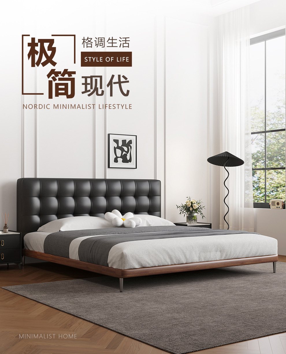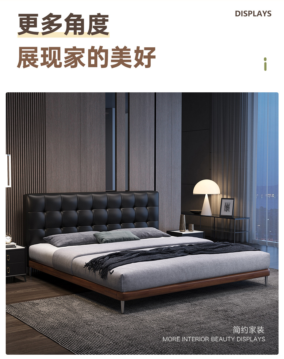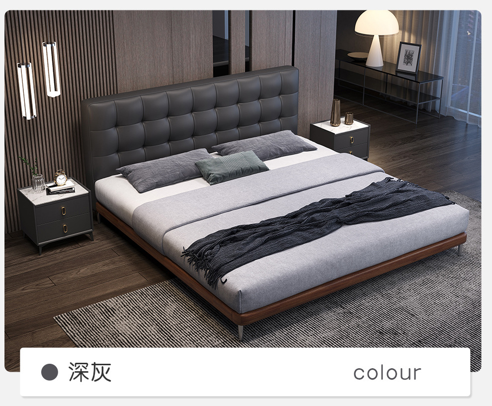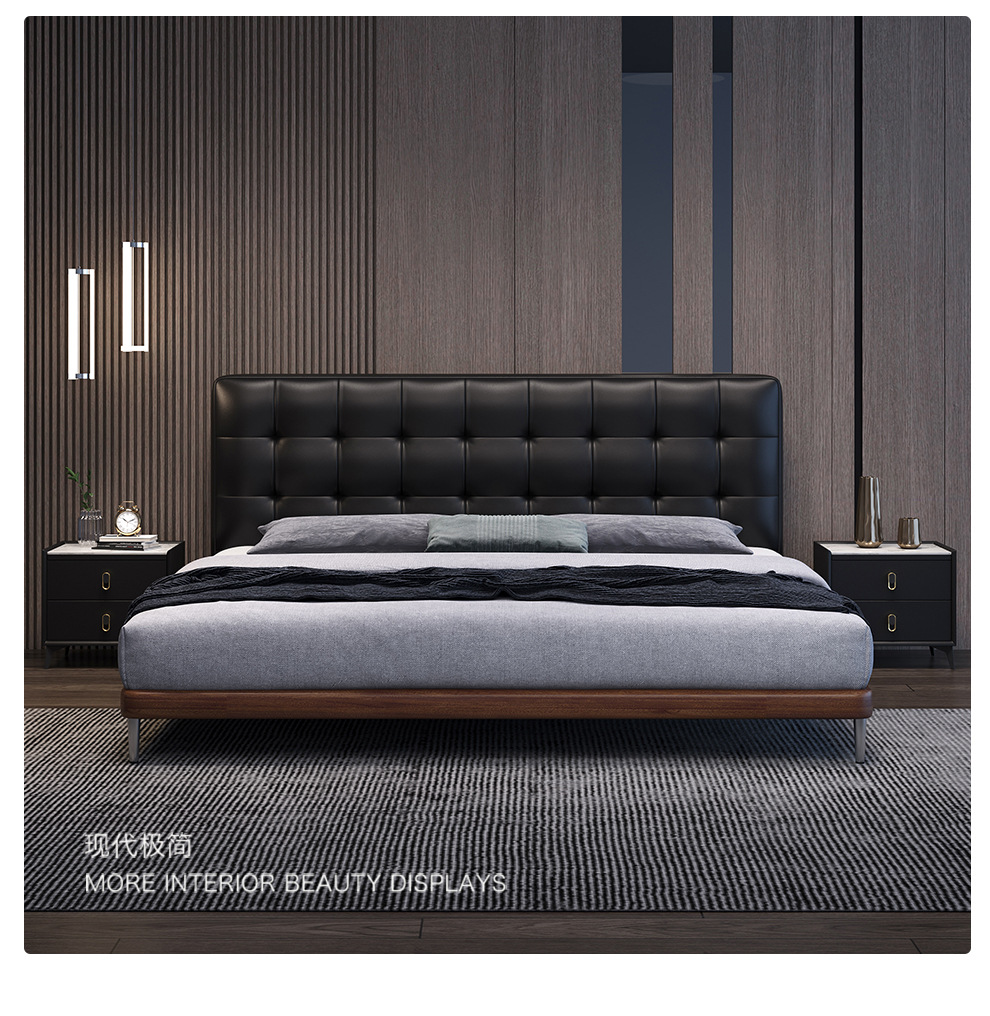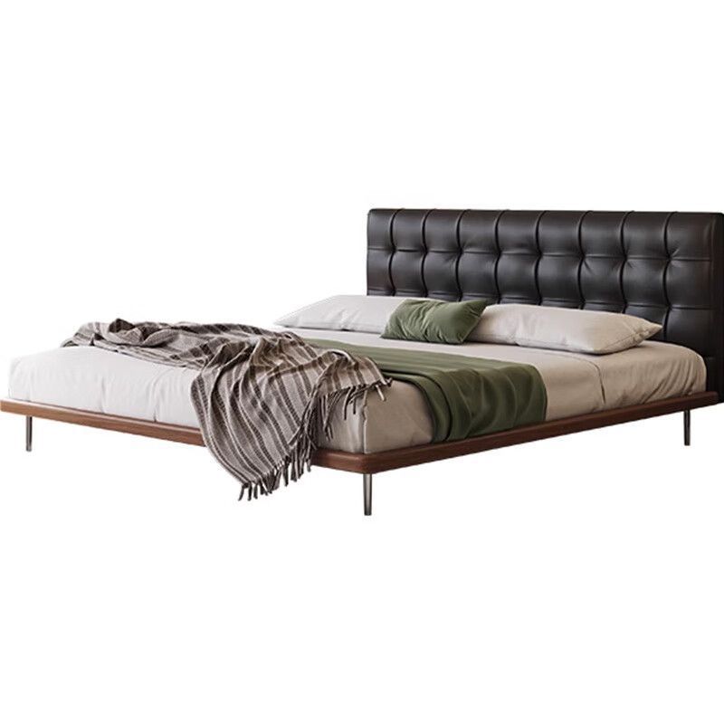 가죽 침대 골동품 와플 이탈리아 미니멀리스트 마스터 침실 더블 침대 레트로 블랙 솔리드 우드 에지 소프트 백 웨딩 침대스토어 가기