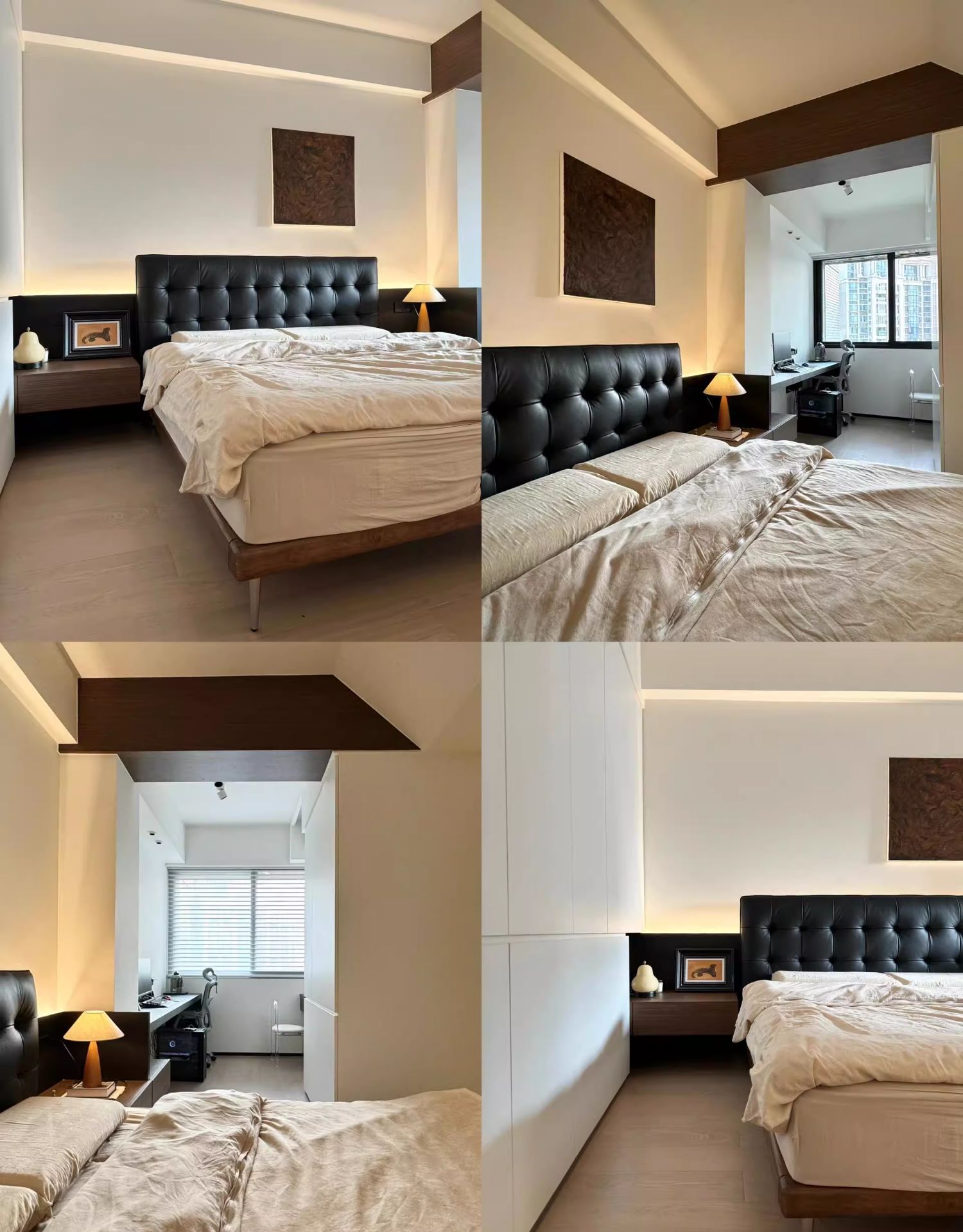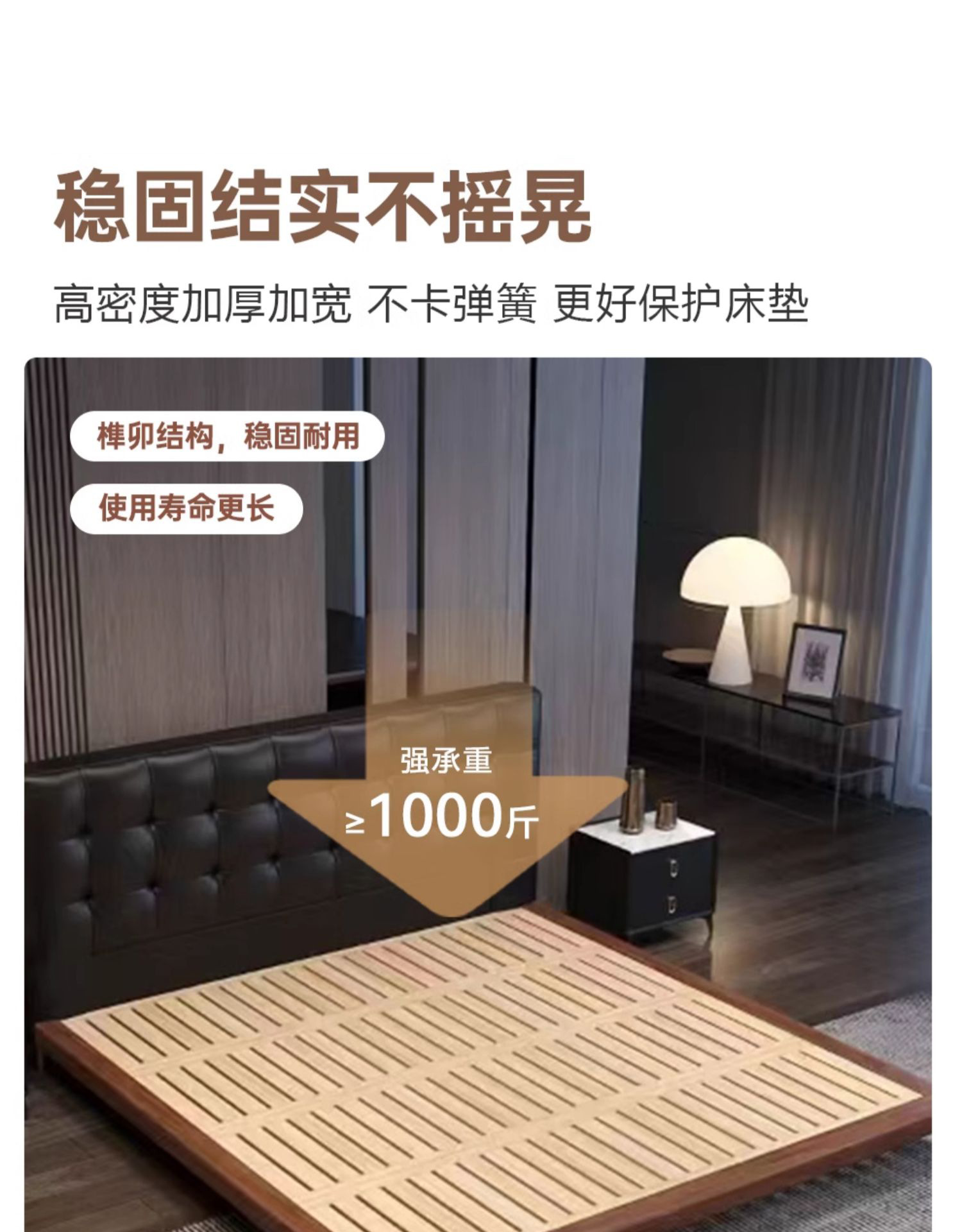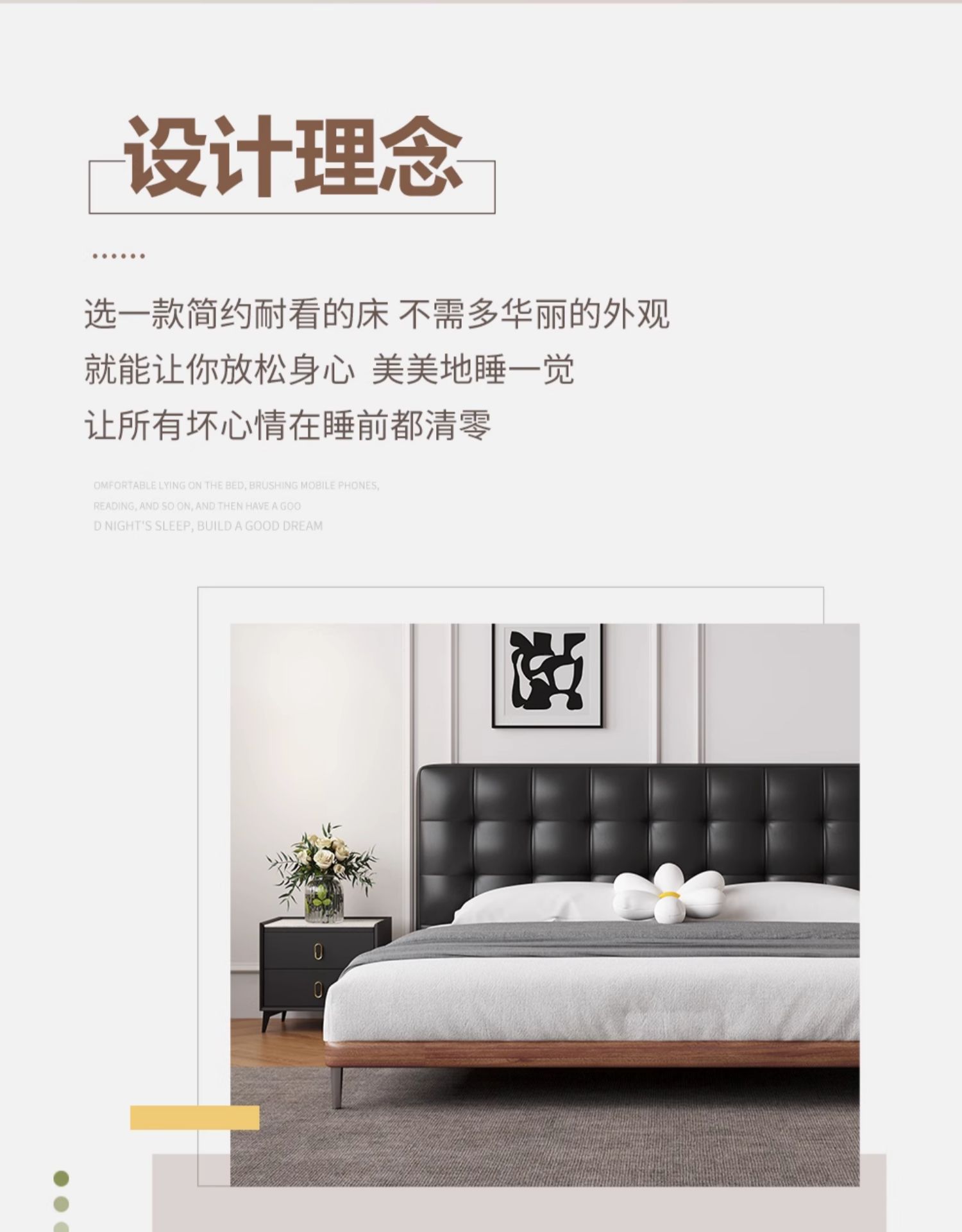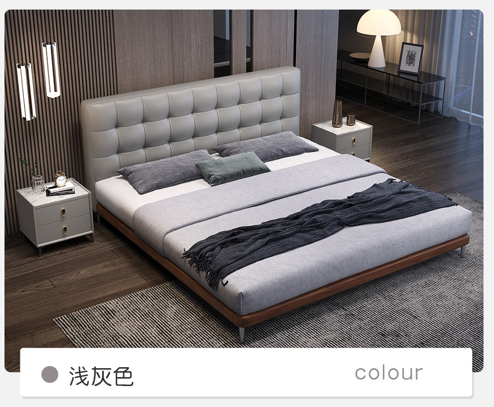 가죽 침대 골동품 와플 이탈리아 미니멀리스트 마스터 침실 더블 침대 레트로 블랙 솔리드 우드 에지 소프트 백 웨딩 침대스토어 가기