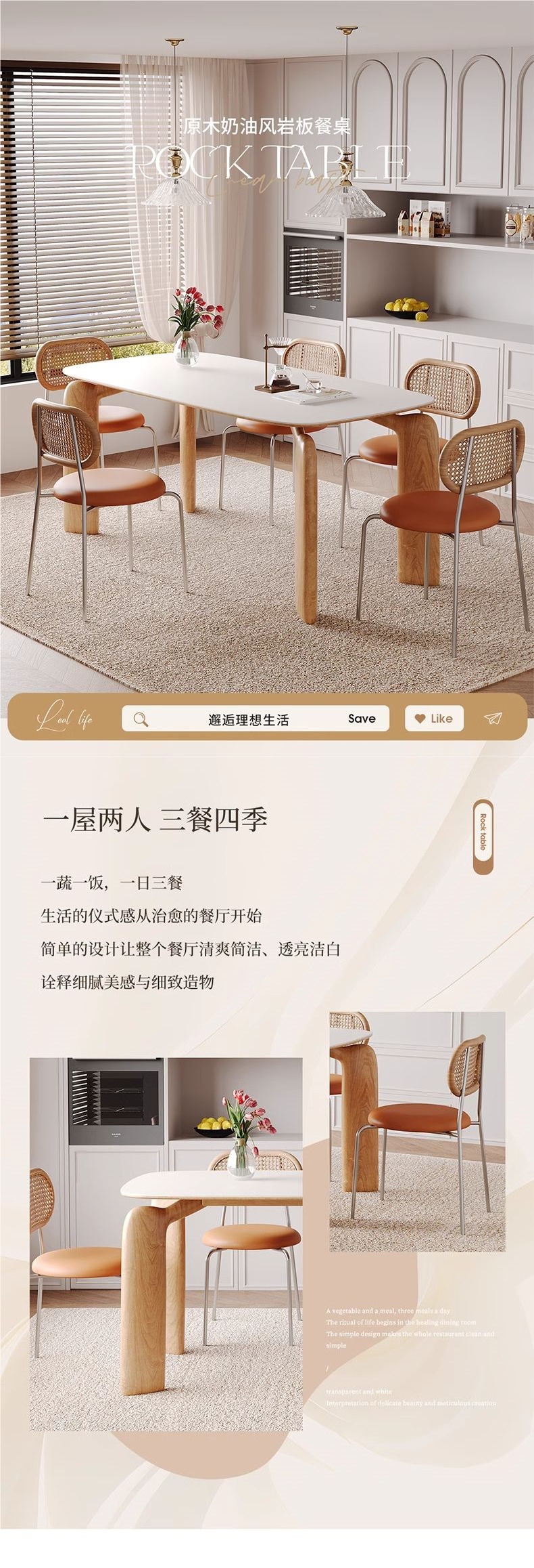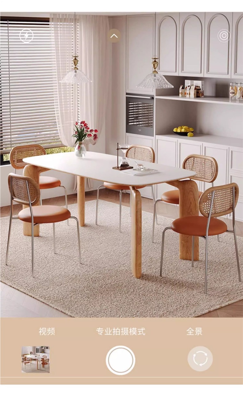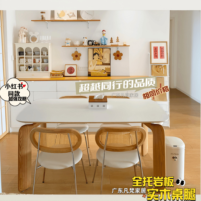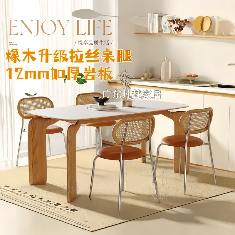 단단한 나무 슬레이트 식탁과 식탁 의자 조합 북유럽 코끼리 빛 럭셔리 간단한 작은 아파트 거실 홈 직사각형 식탁스토어 가기