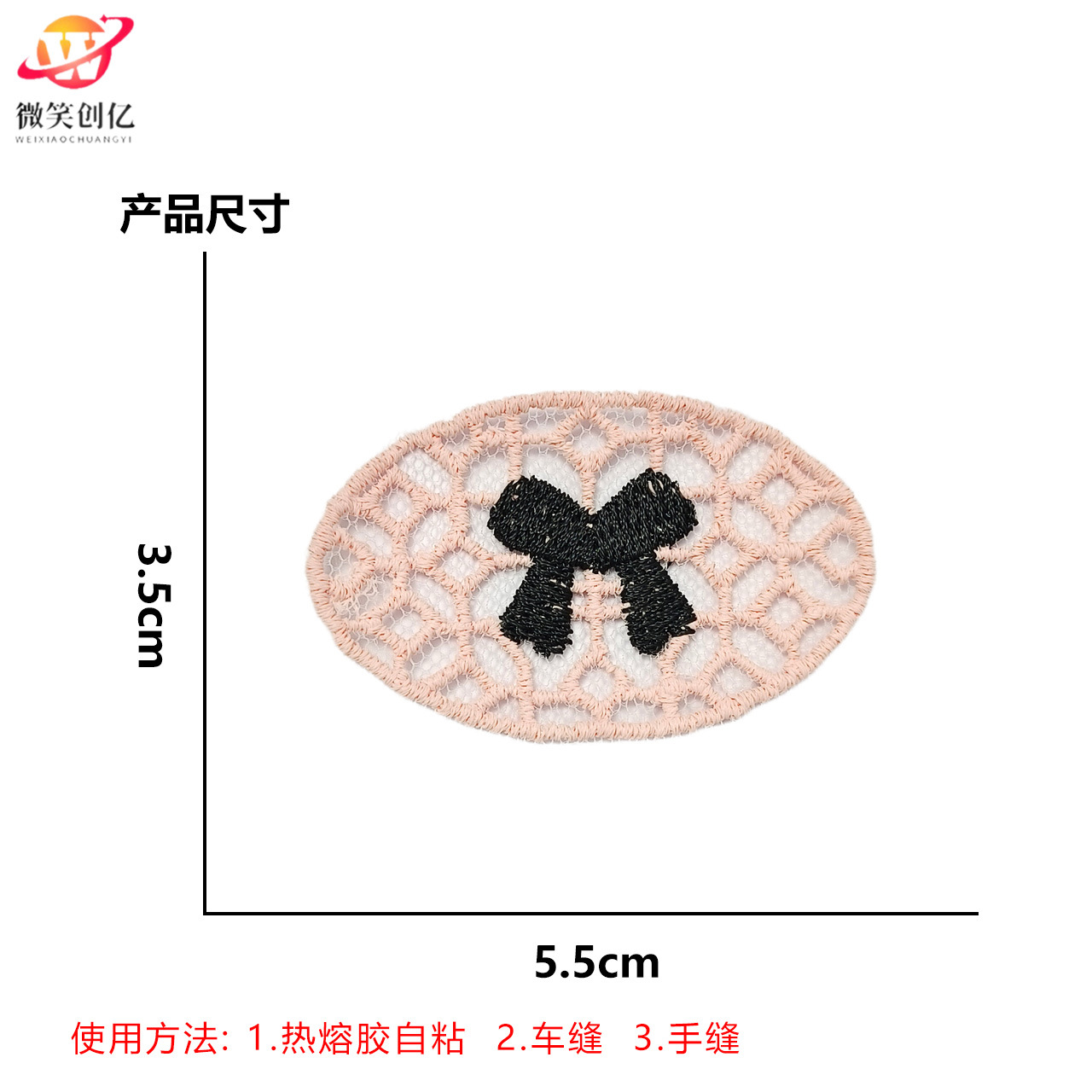 귀여운 작은 레이스 라벨 자수, 패션 의류 천 패치, 액세서리, 창의적인 천 라벨, 중공 디자인, 가죽 라벨 가장자리