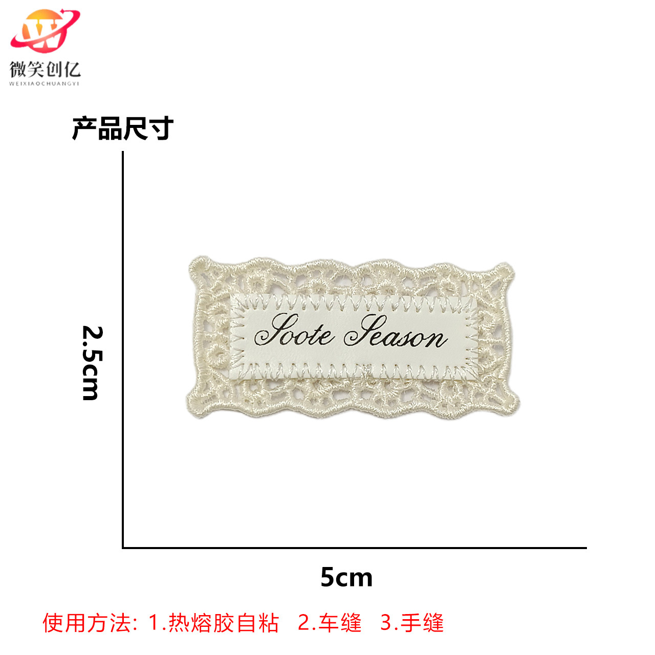 귀여운 작은 레이스 라벨 자수, 패션 의류 천 패치, 액세서리, 창의적인 천 라벨, 중공 디자인, 가죽 라벨 가장자리스토어 가기