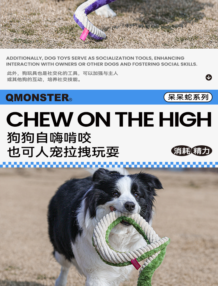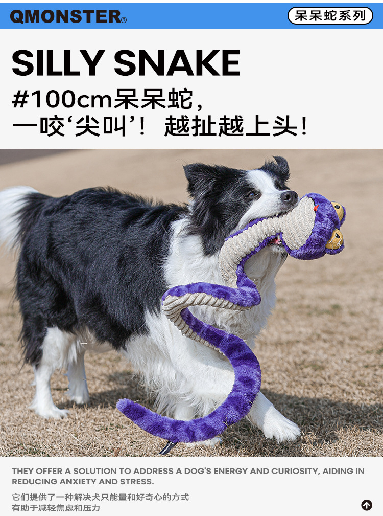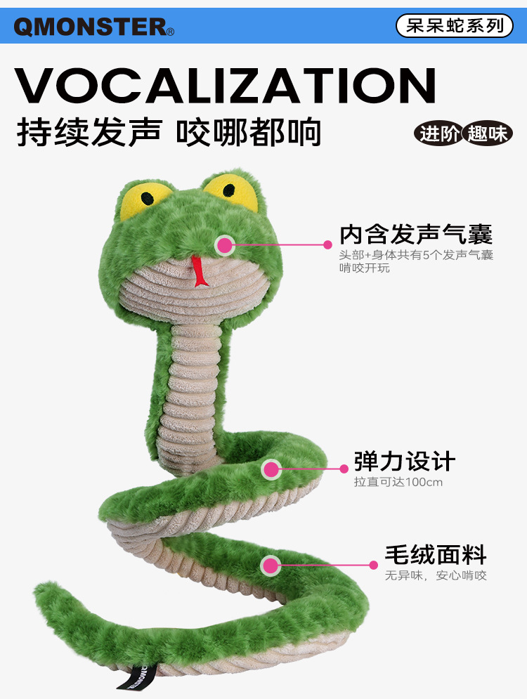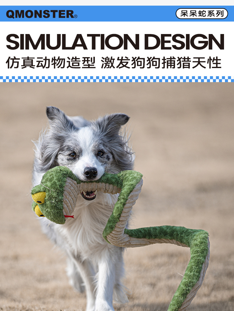 Qmonster Dumbo Snake Cross-border 핫 세일 시뮬레이션 스네이크 플러시 포켓 파이썬 당기기 이빨 Molar Dog Toy