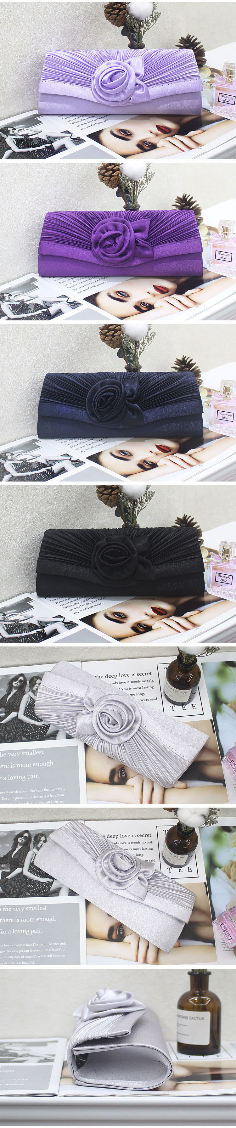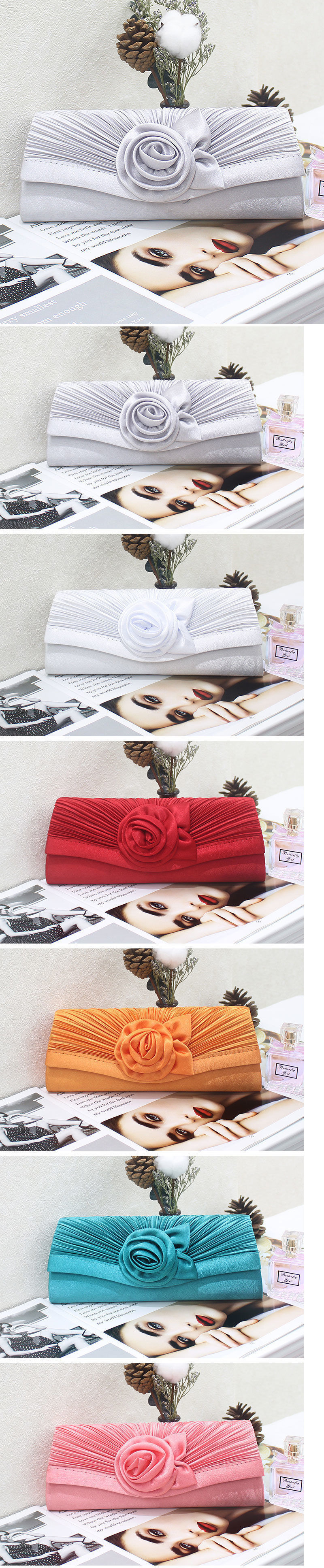 새로운 유럽과 미국의 디자인 유명 인사 클러치 백 체인 플리츠 꽃 우아한 여성 클러치 이브닝 백스토어 가기