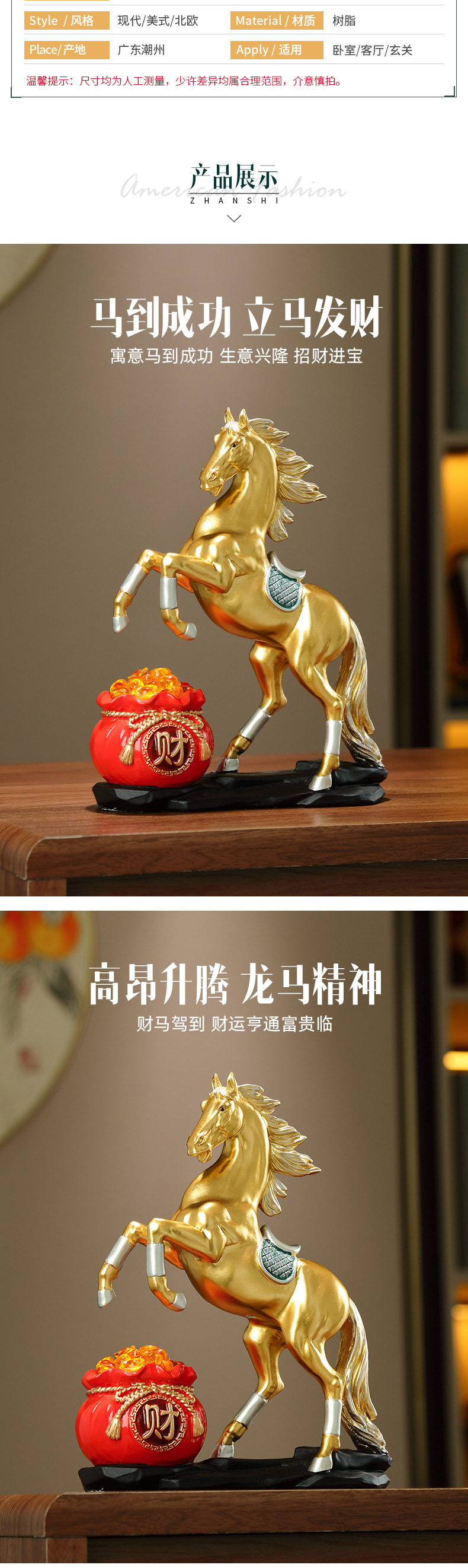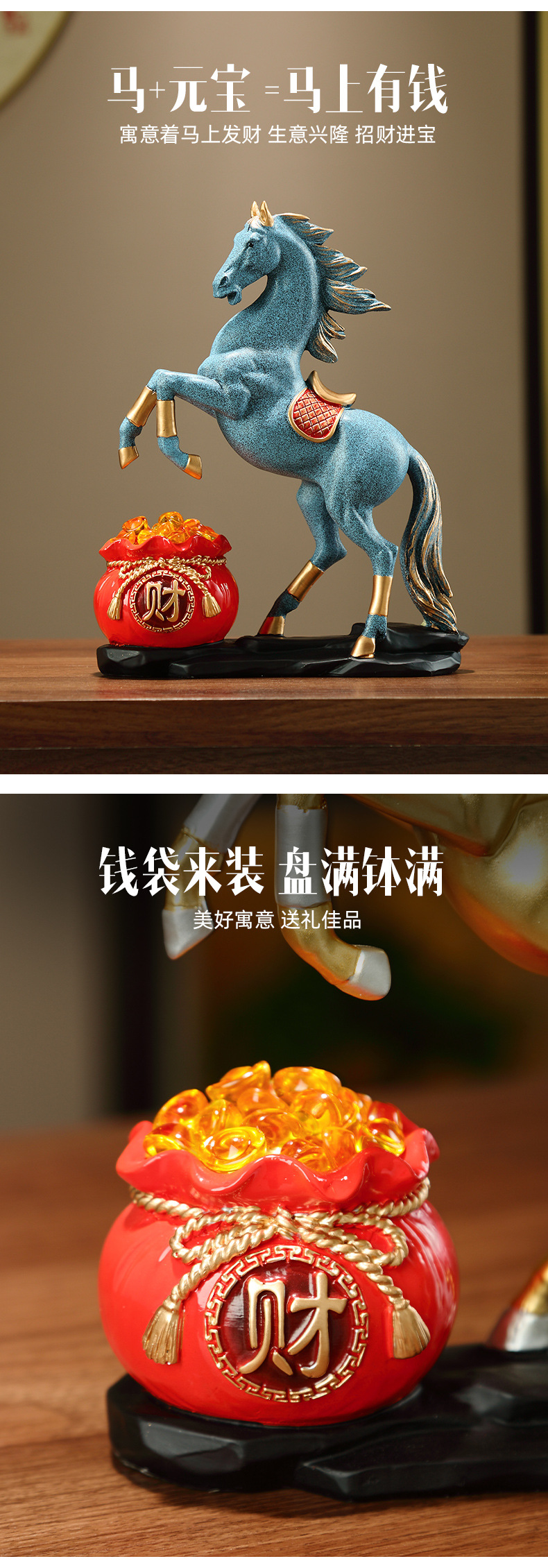 돈을 얻을 수 있는 즉시 행운의 말 장식품, 고급 거실 입구 TV 캐비닛 데스크탑, 즉시 성공적인 오프닝 선물스토어 가기
