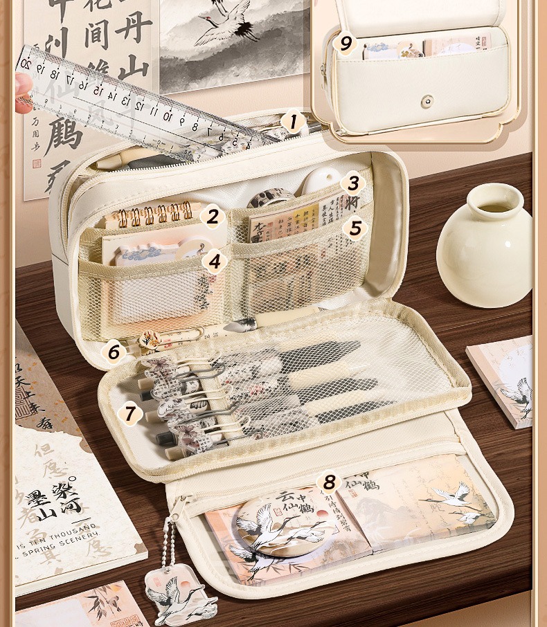 2025 새로운 국가 스타일 연필 가방 새로운 중국 스타일 대용량 연필 상자 초등 학생 문구 상자 고가 연필 가방