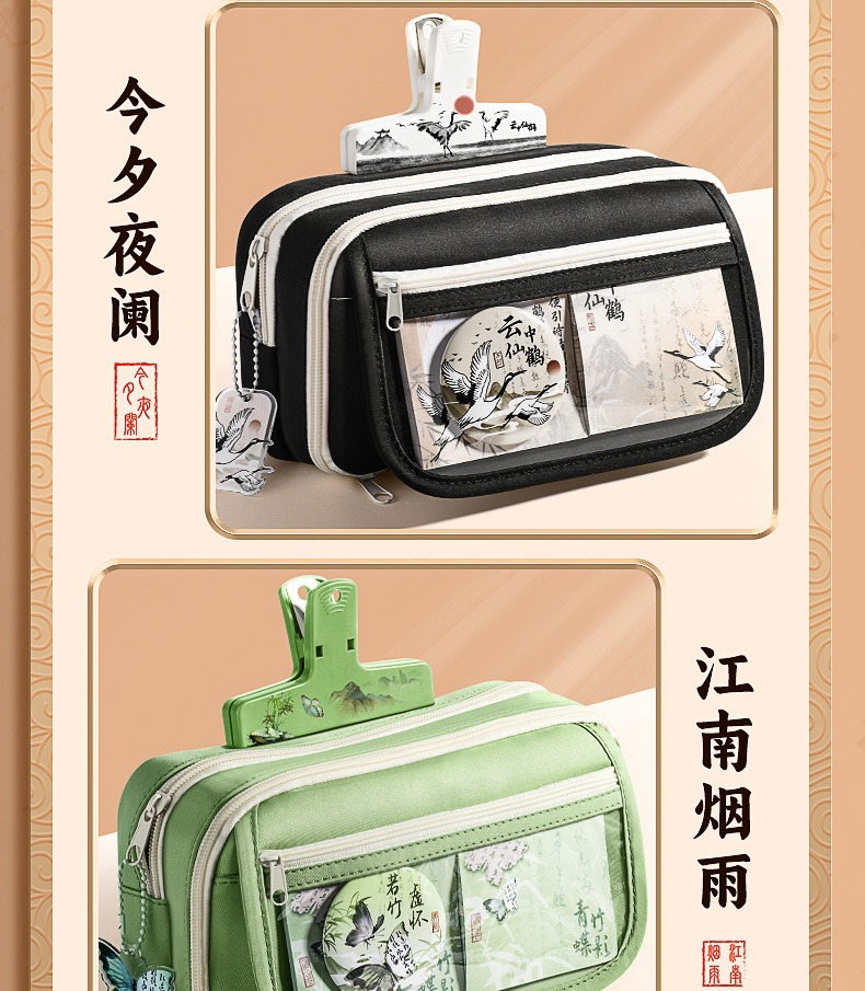 2025 새로운 국가 스타일 연필 가방 새로운 중국 스타일 대용량 연필 상자 초등 학생 문구 상자 고가 연필 가방스토어 가기