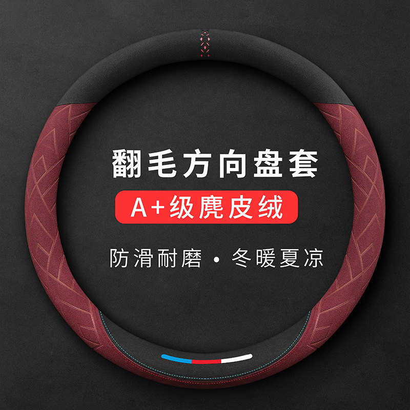 자동차 핸들 커버 플러시 이탈리아 스웨이드 여름과 겨울 가죽 초박형 사계절 미끄럼 방지 땀 흡수 핸들 바 커버