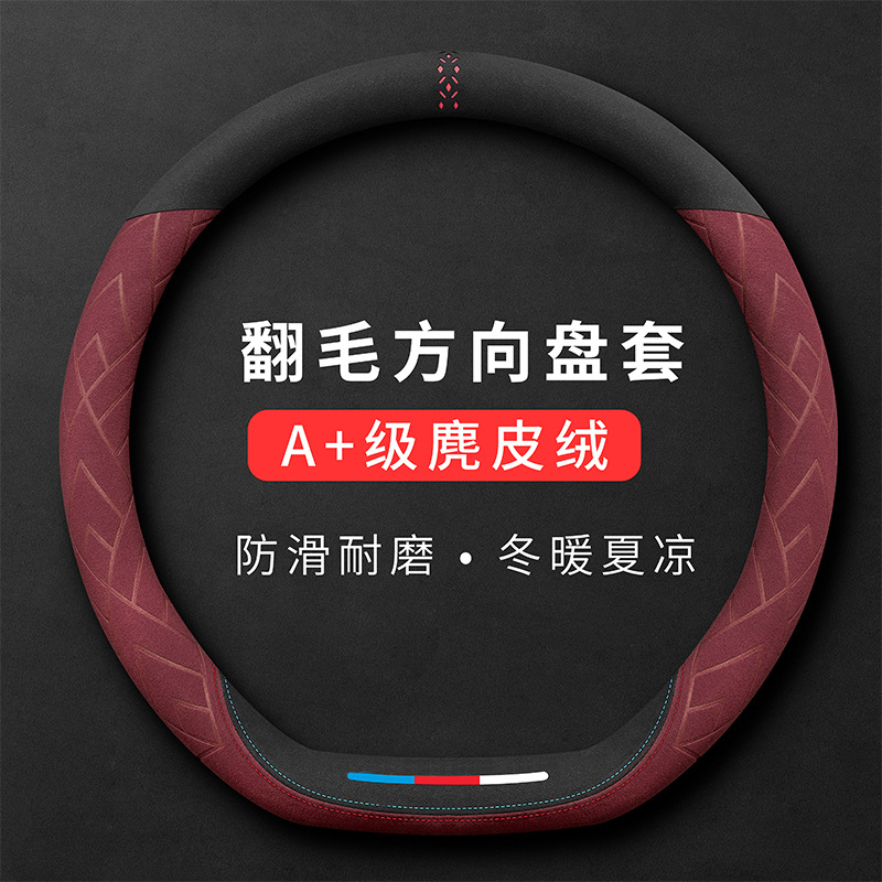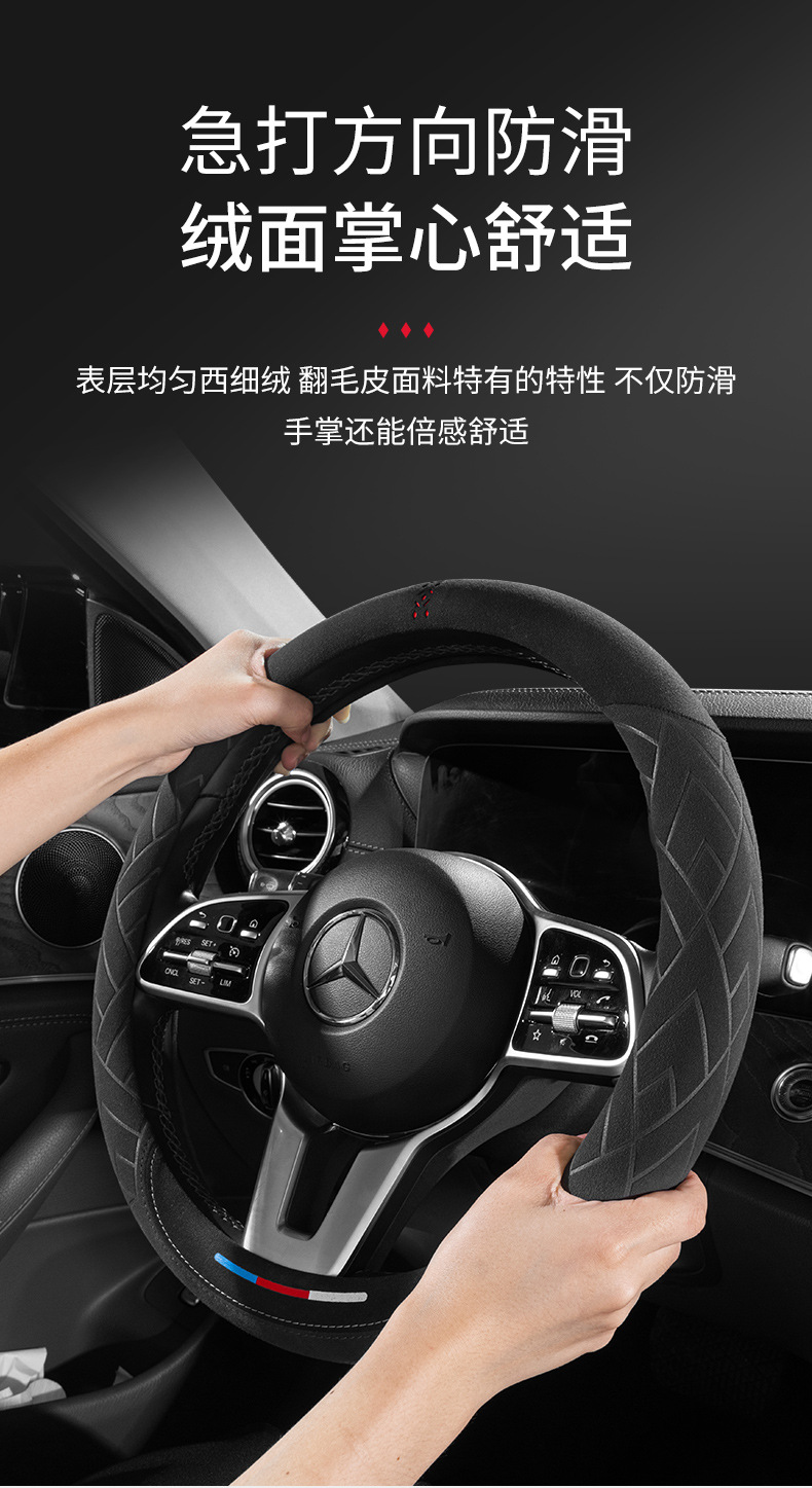 자동차 핸들 커버 플러시 이탈리아 스웨이드 여름과 겨울 가죽 초박형 사계절 미끄럼 방지 땀 흡수 핸들 바 커버스토어 가기