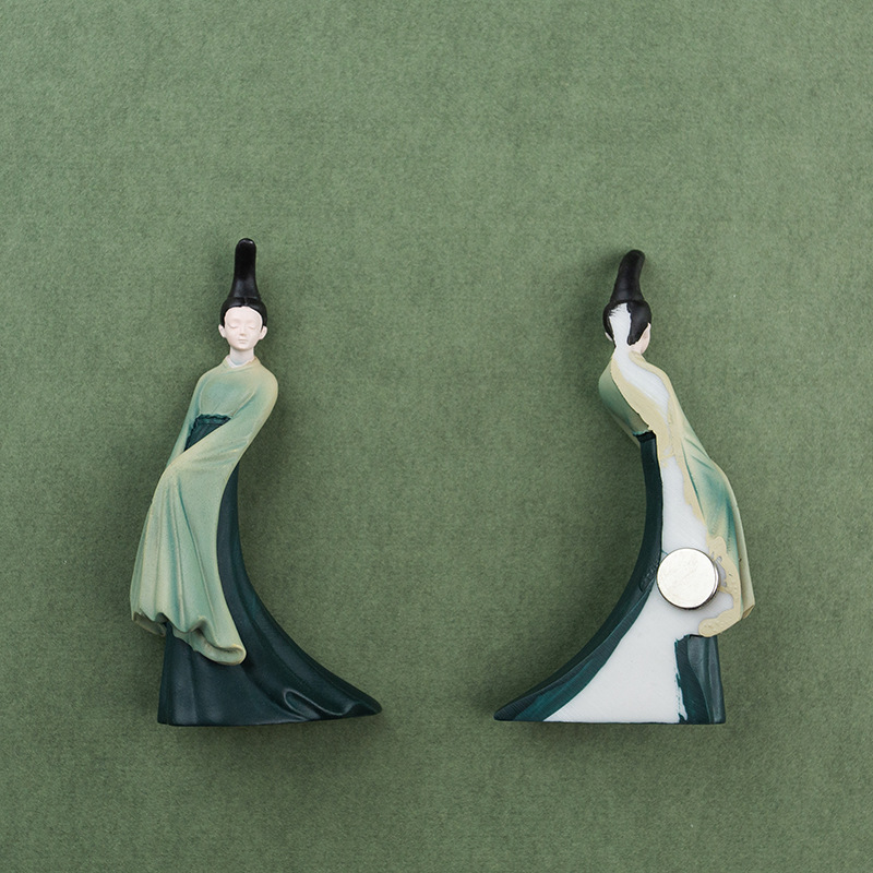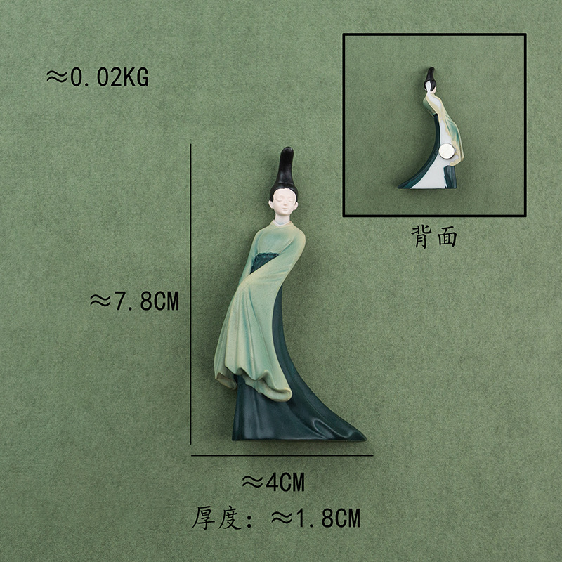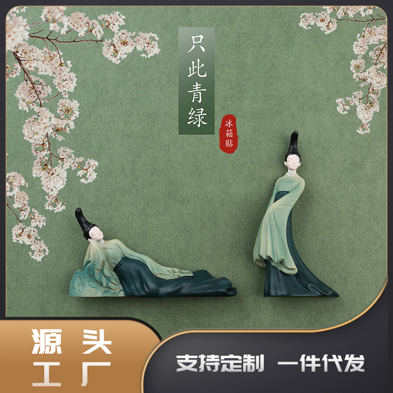 창의적인 녹색 수지 냉장고 자석, 문화적이고 창의적인 고대 스타일의 여성 장식, 새로운 중국 스타일의 가정용 국가 트렌드 문화 및 창의적 선물