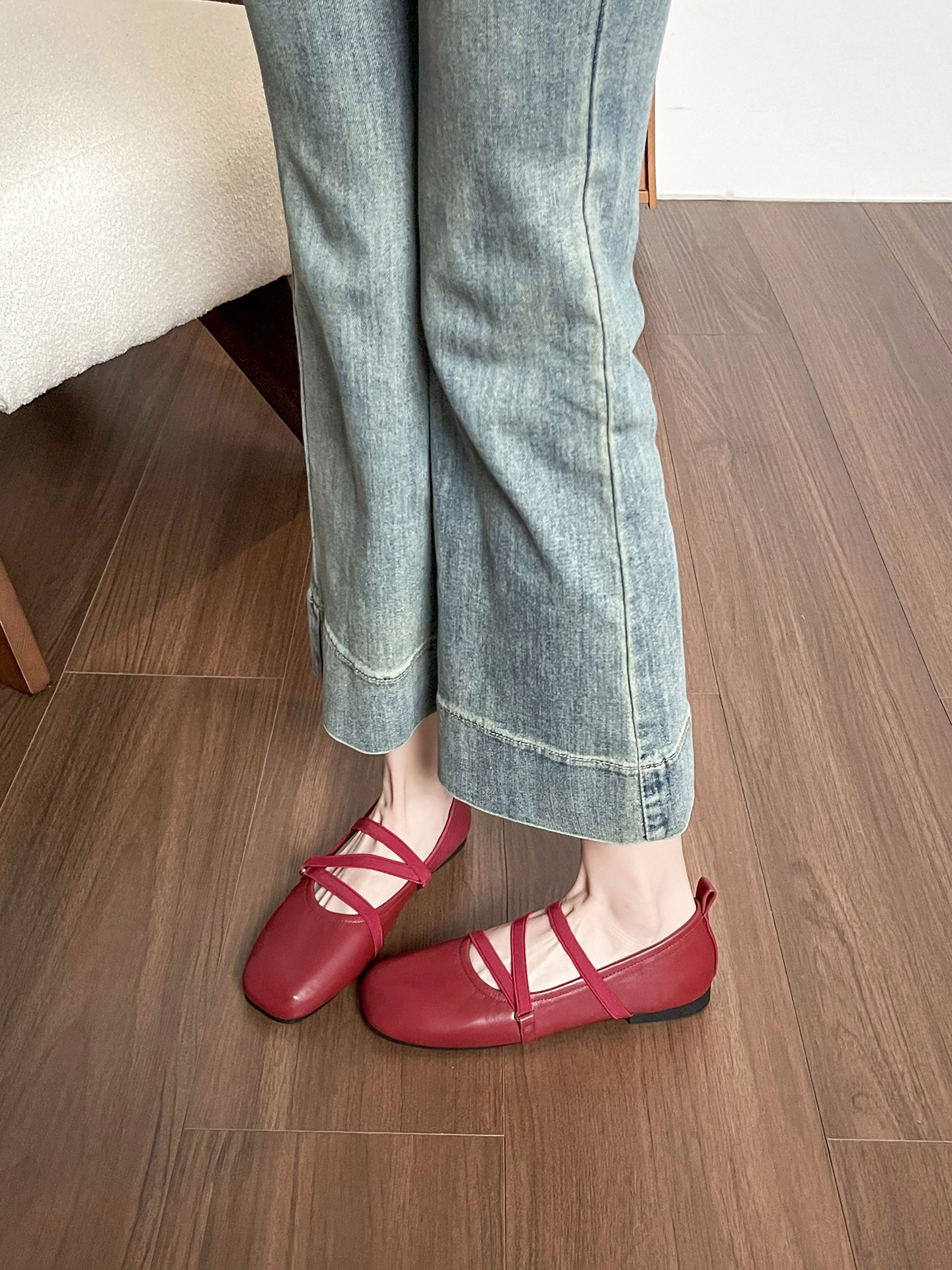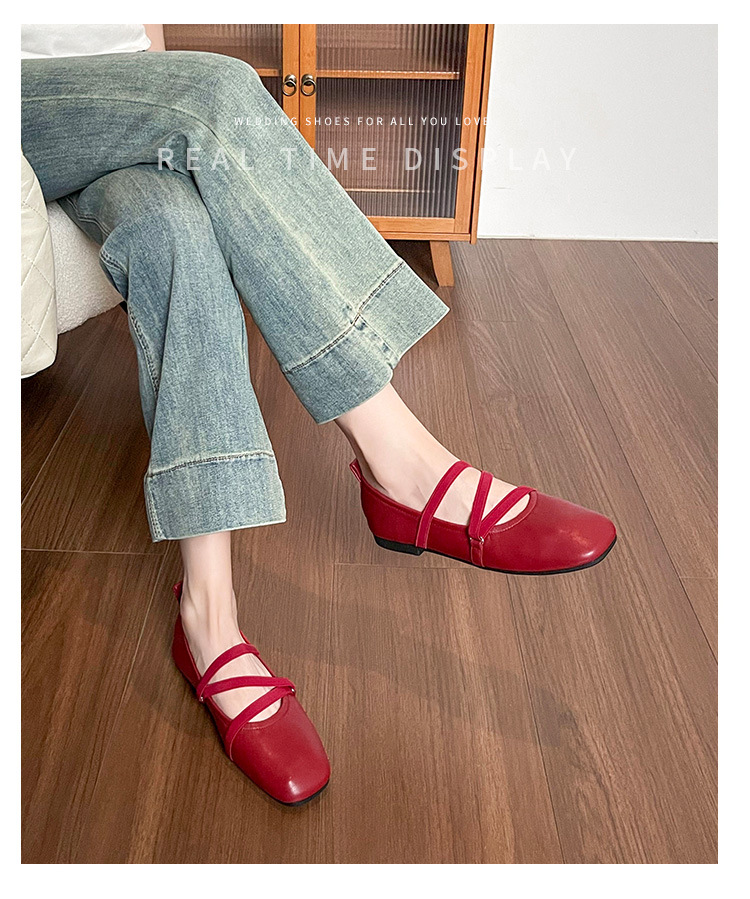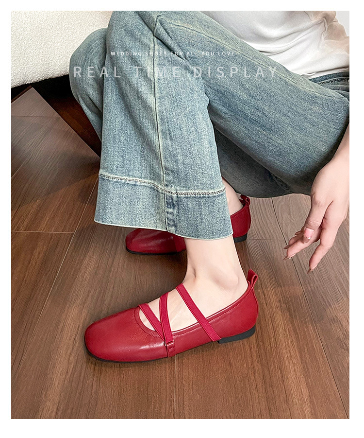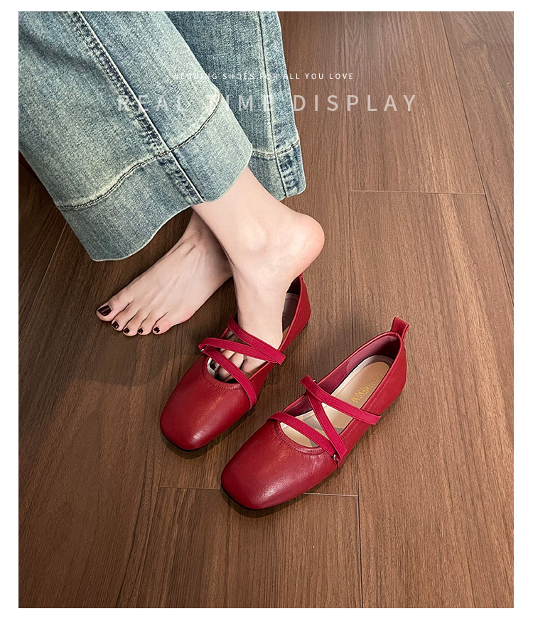 966-2 봄 프렌치 스타일의 아름다운 빨간색 여성용 플랫 슈즈, 스커트와 잘 어울리는 여성용 플랫 발레 슈즈스토어 가기