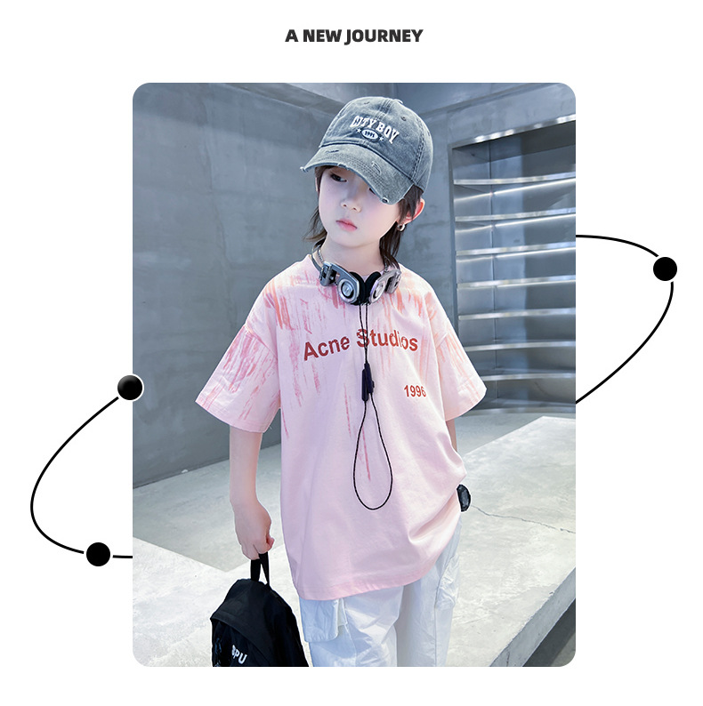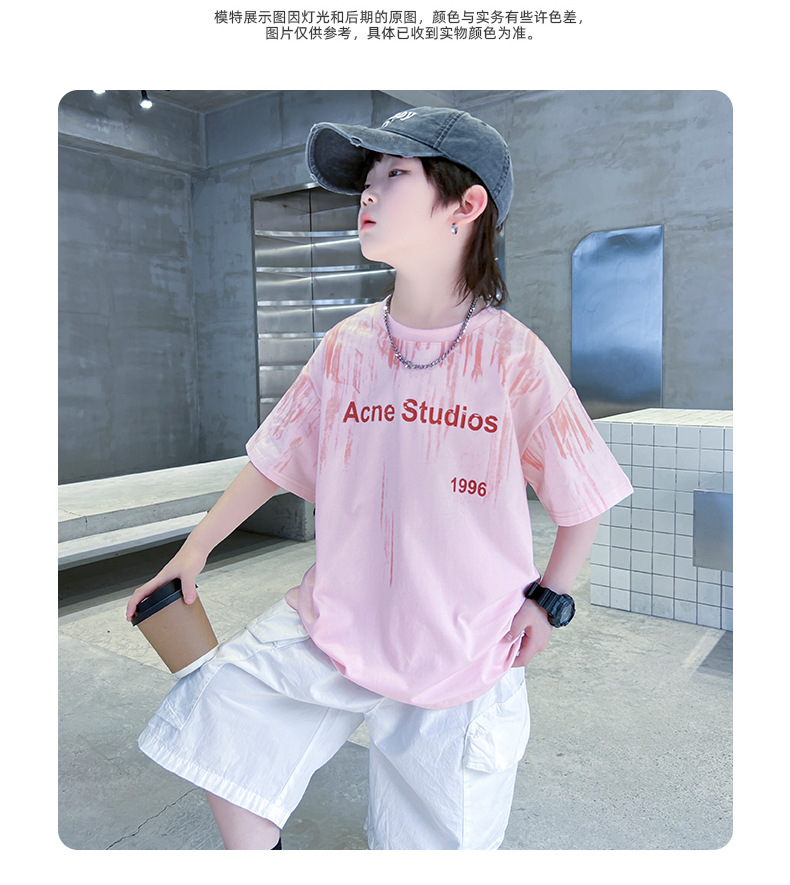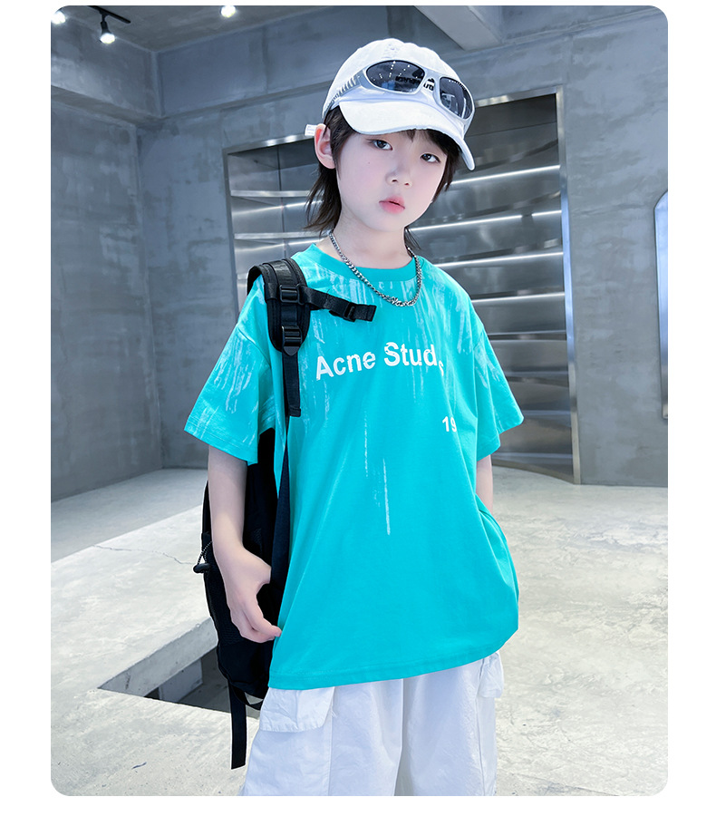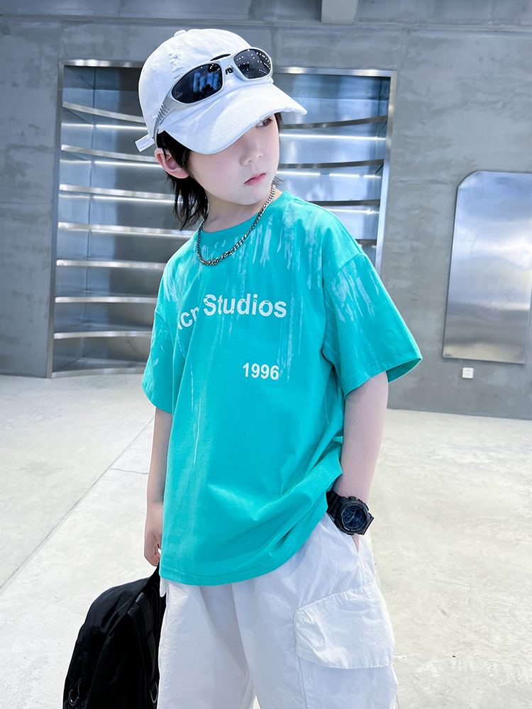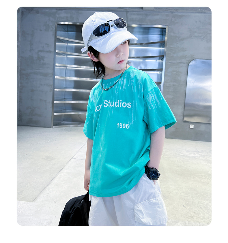 소년 여름 멋진 스타일 반팔 티셔츠 2025 새로운 어린이 소년 여름 순수 코튼 반팔 루즈 탑 트렌디 T스토어 가기