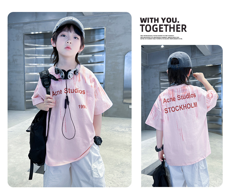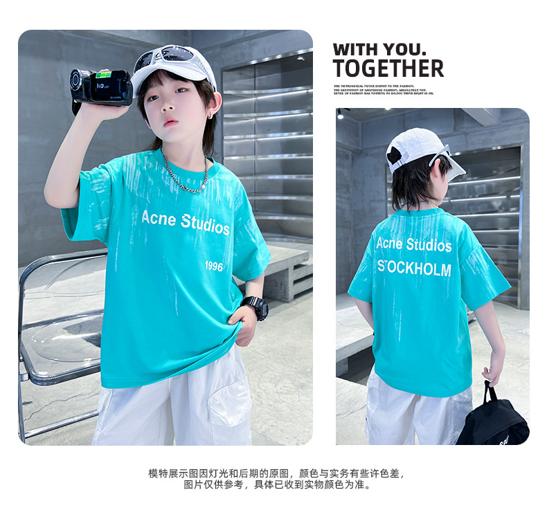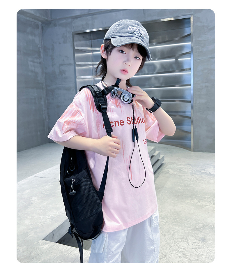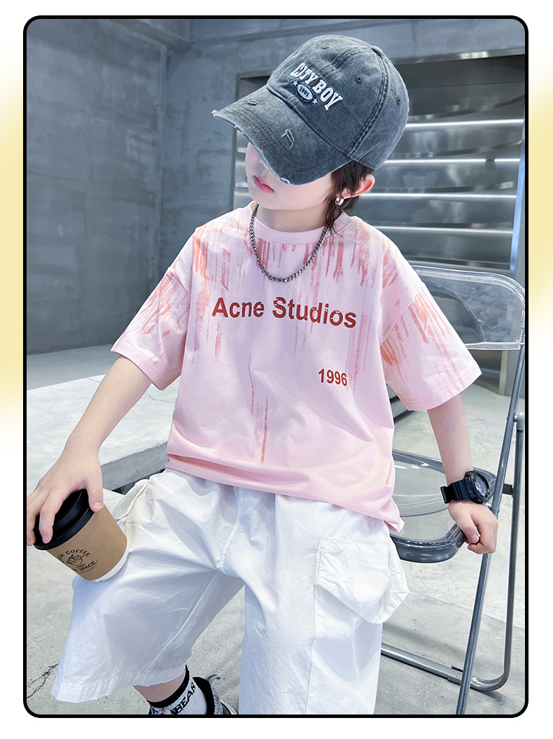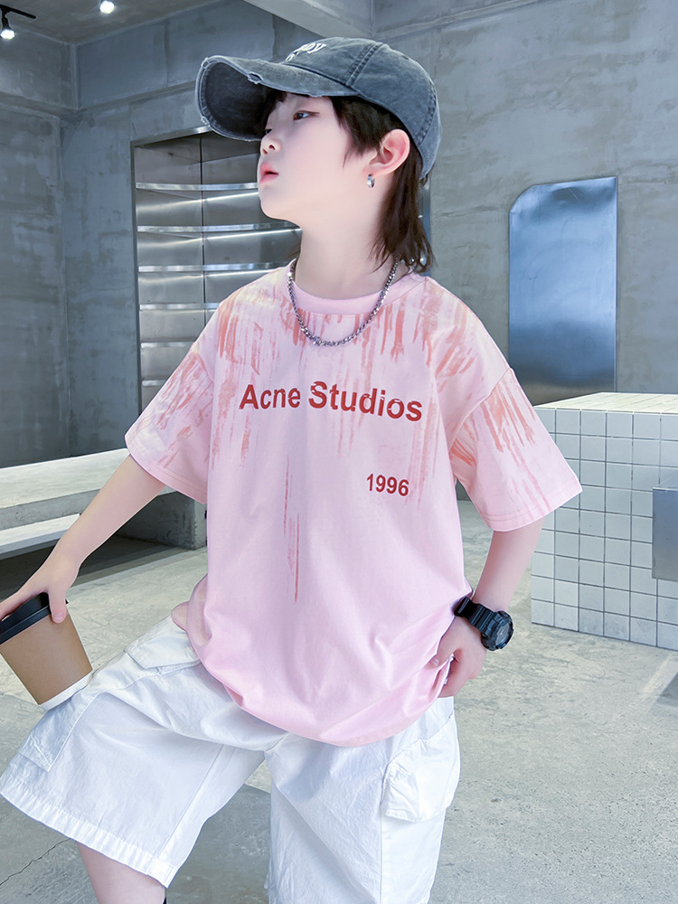 소년 여름 멋진 스타일 반팔 티셔츠 2025 새로운 어린이 소년 여름 순수 코튼 반팔 루즈 탑 트렌디 T스토어 가기