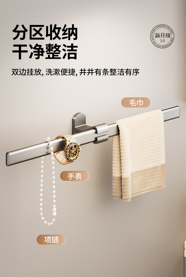 공장에서 구멍이 없는 욕실 수건 보관함, 욕실 벽걸이, 알루미늄 옷걸이를 공급합니다.스토어 가기