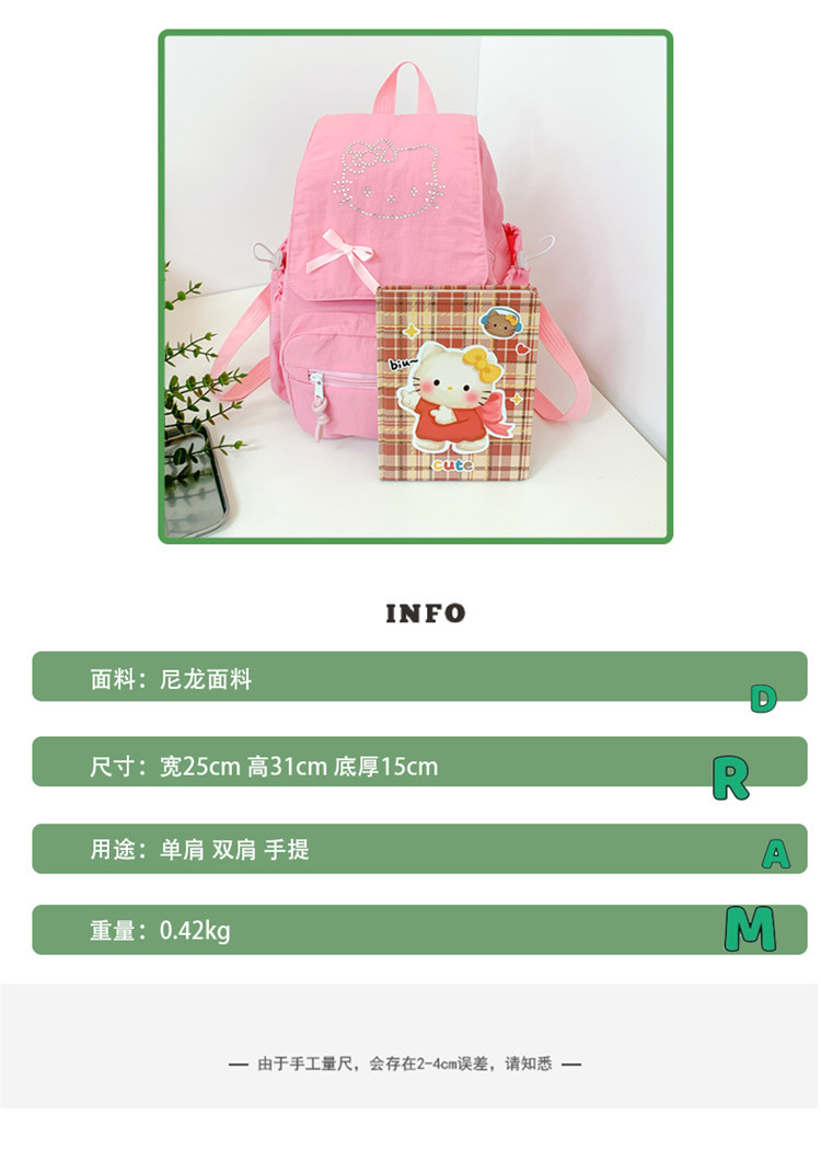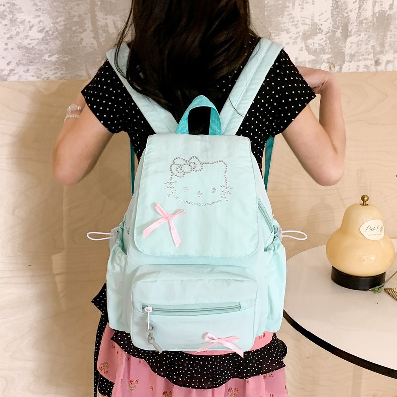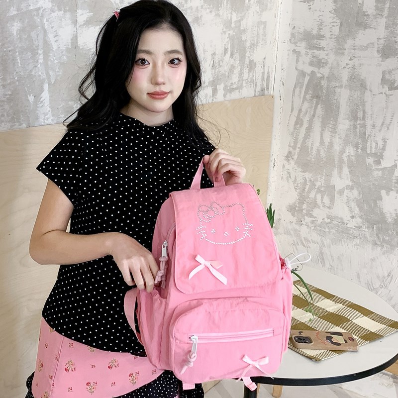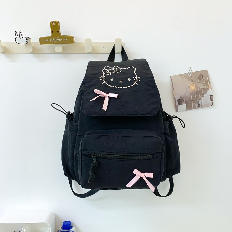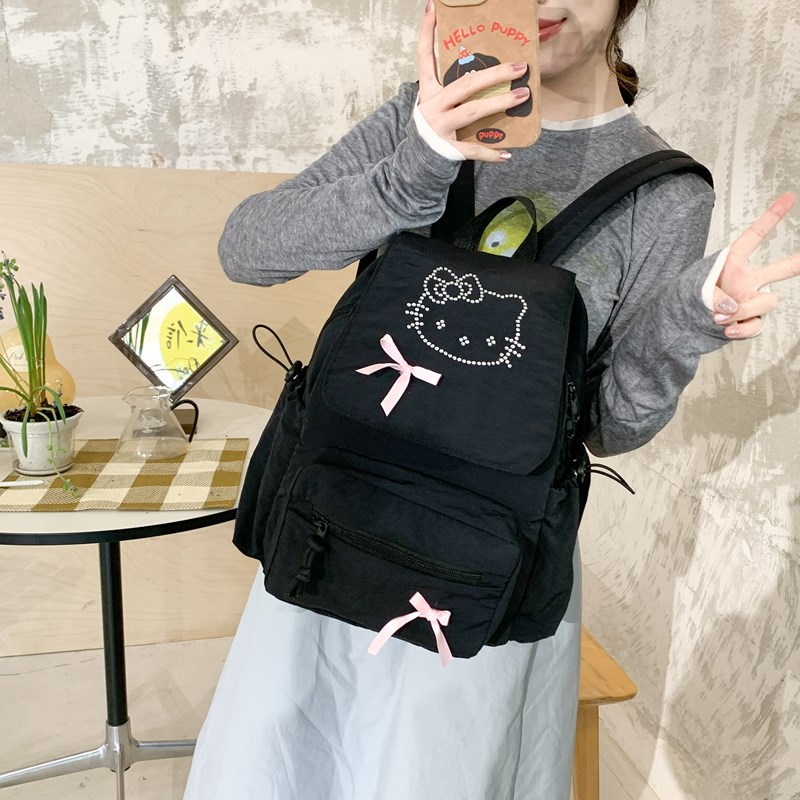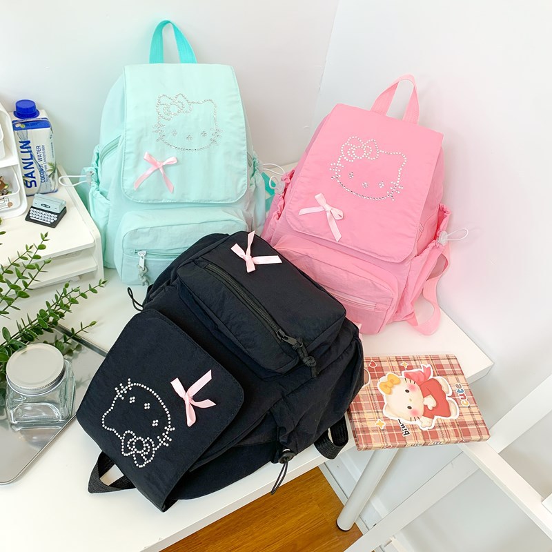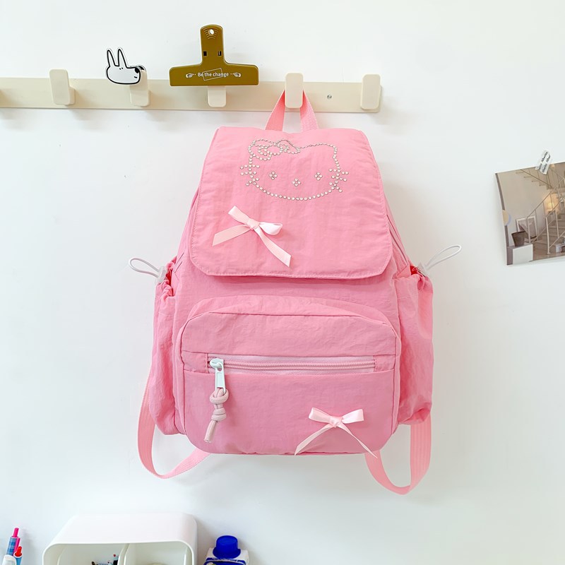 Bowknot 라인스톤 kt 고양이 배낭 한국 틈새 디자인 가볍고 심플한 나일론 배낭 여행 여행 가방