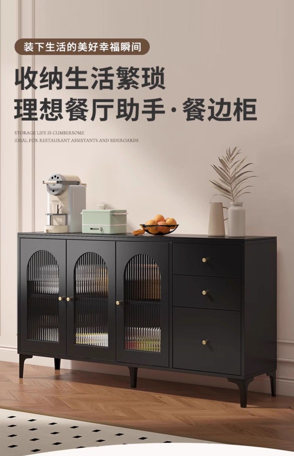블랙 사이드보드, 모던하고 심플한 일체형 서랍장, 벽걸이형 거실 수납장, 주방 캐비닛, 차와 와인 캐비닛