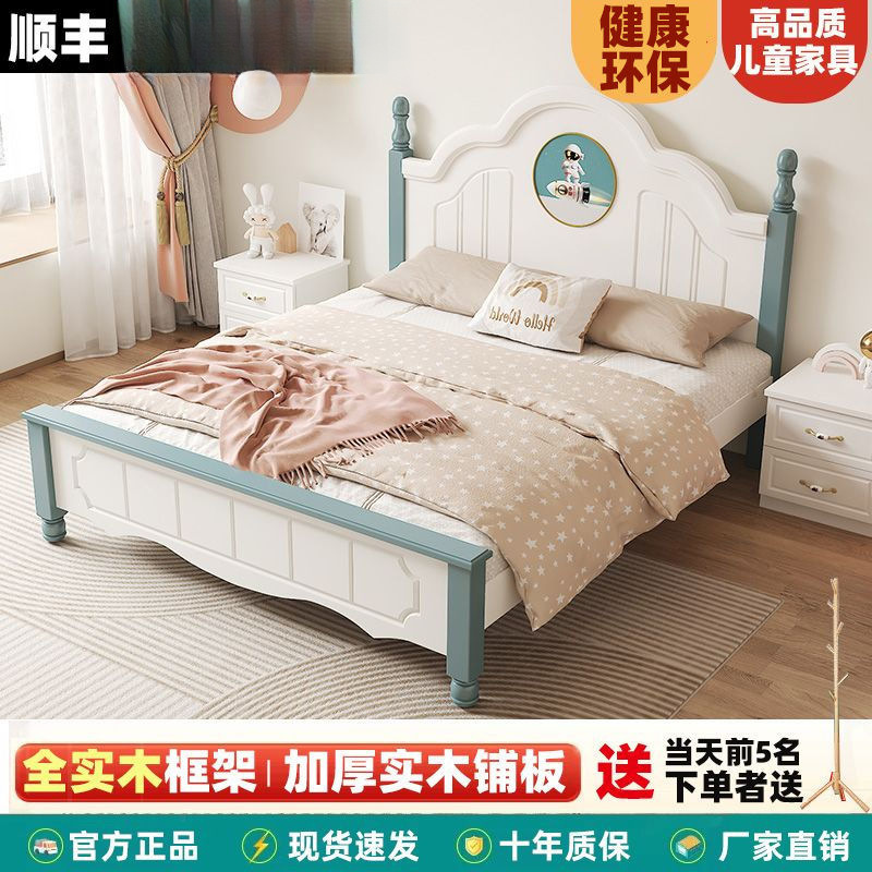 소년과 소녀를위한 단단한 나무 어린이 침대 더블 침대 현대 간단한 미국 학생 경제적 인 마스터 침실 공주 유럽 침대스토어 가기
