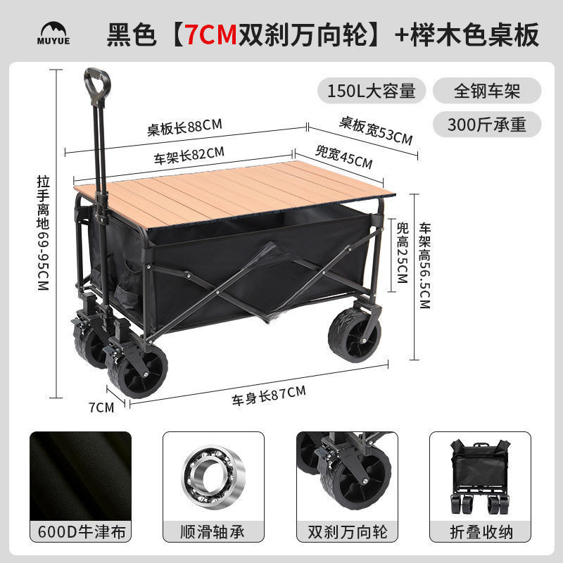 • 블랙 [이중 두꺼운 옥스포드 천] - 대형 / 8inch 오프로드 휠 / 더블 브레이크 / 티핑 버킷 스타일 + 나뭇결 테이블